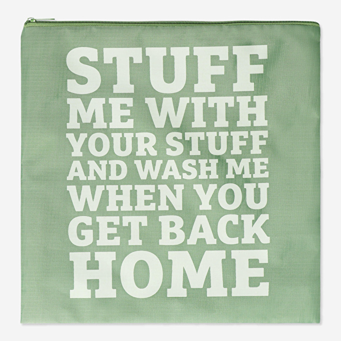Yazılı Yeşil Düzenleyici Çanta, 35 x 34 x 1 cm ölçüleri ile geniş bir alan sunar ve eşyalarınızı düzenli tutmanıza yardımcı olur. Valizinize zahmetsizce yerleşir ve yer değiştirirken eşyalarınızı kolayca taşımanızı sağlar. Büyük ve düz tasarımıyla, her seyahatinizde yanınızda olması gereken mükemmel bir düzenleyicidir.