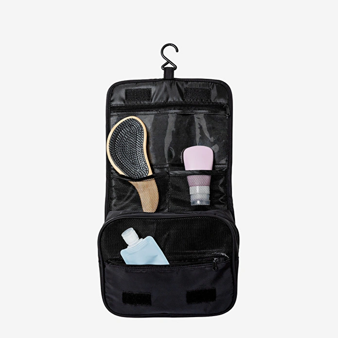 Düzenleyici Siyah Çanta, sık seyahat edenler için tasarlanmıştır. 24 x 20,5 x 9,5 cm ölçülerindedir ve dayanıklı polyesterden üretilmiştir. Asma kancası ile birlikte gelir. Maksimum 1 kg kapasiteli bu çanta, hareket halindeyken tüm seyahat gereçlerinizi düzenlemeniz için idealdir.