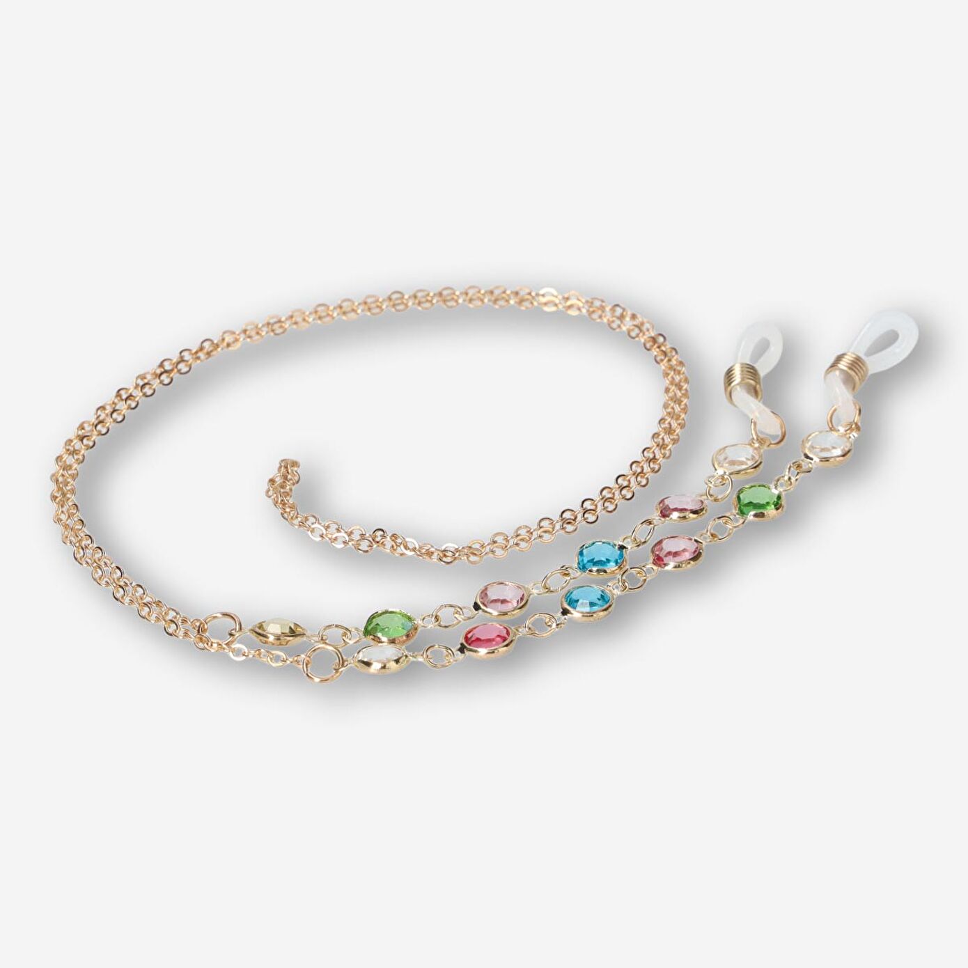 Gözlük stilinizi zarif ve renkli bir dokunuşla yükseltmek için ideal olan Taşlı Gözlük Zinciri, gözlüklerinize hem şıklık hem de işlevsellik katar. 70 cm uzunluğunda olan bu gözlük kayışı, canlı ve çok renkli taşlarla süslenmiştir, böylece gözlüklerinizi eğlenceli ve şık bir şekilde tutar.