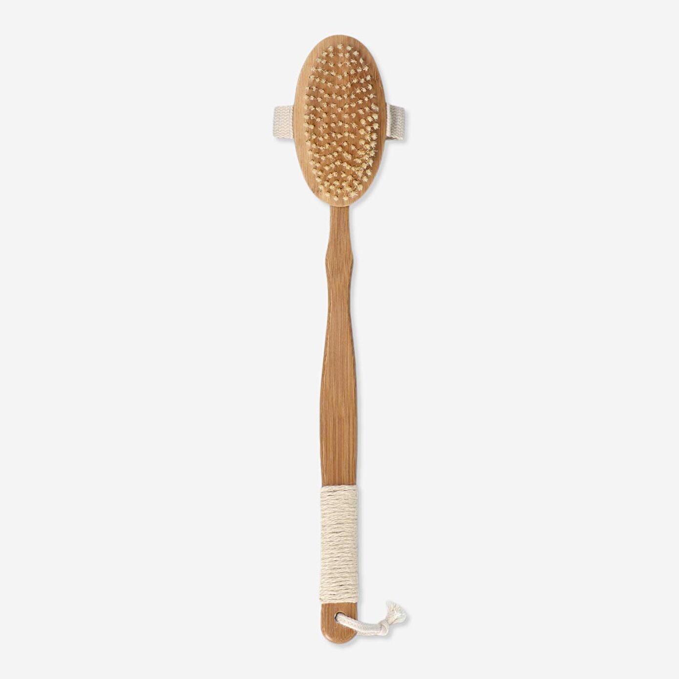 Kendine bakım rutininizi bu çok yönlü kuru vücut fırçası ile geliştirebilirsin! FSC sertifikalı bambu, kenevir, plastik ve pamuk kullanılarak üretilmiş olan bu fırça, nazik eksfoliasyon ve cilt tonunu iyileştirme için tasarlanmıştır. Fırça, kan dolaşımını destekler, lenfatik drenajı artırır ve selülit görünümünü azaltır.