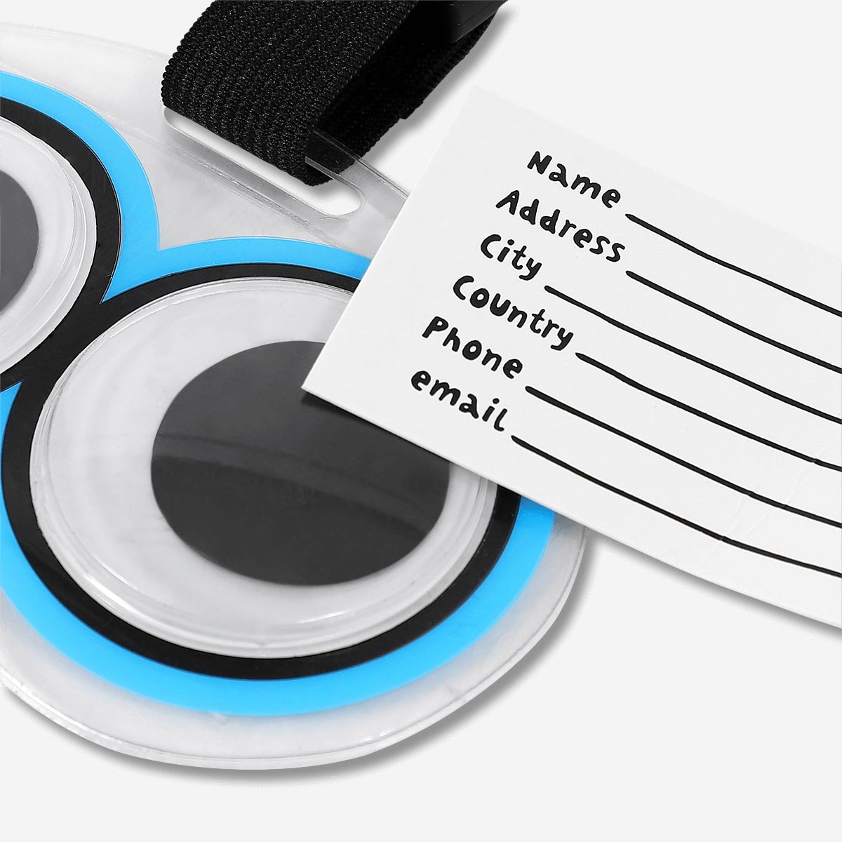Mavi Valiz Etiketi, seyahat ekipmanınıza eğlenceli ve kişisel bir dokunuş eklemenizi sağlar. Kalabalıkta öne çıkacak şekilde tasarlanan bu valiz etiketi, canlı mavi bir çerçeve ile çevrili hareketli gözleri ile dikkat çekerek valizinizin bagaj bandında kolayca bulunmasını ve bu sayede seyahatlerinizde zaman tasarrufu sağlar.