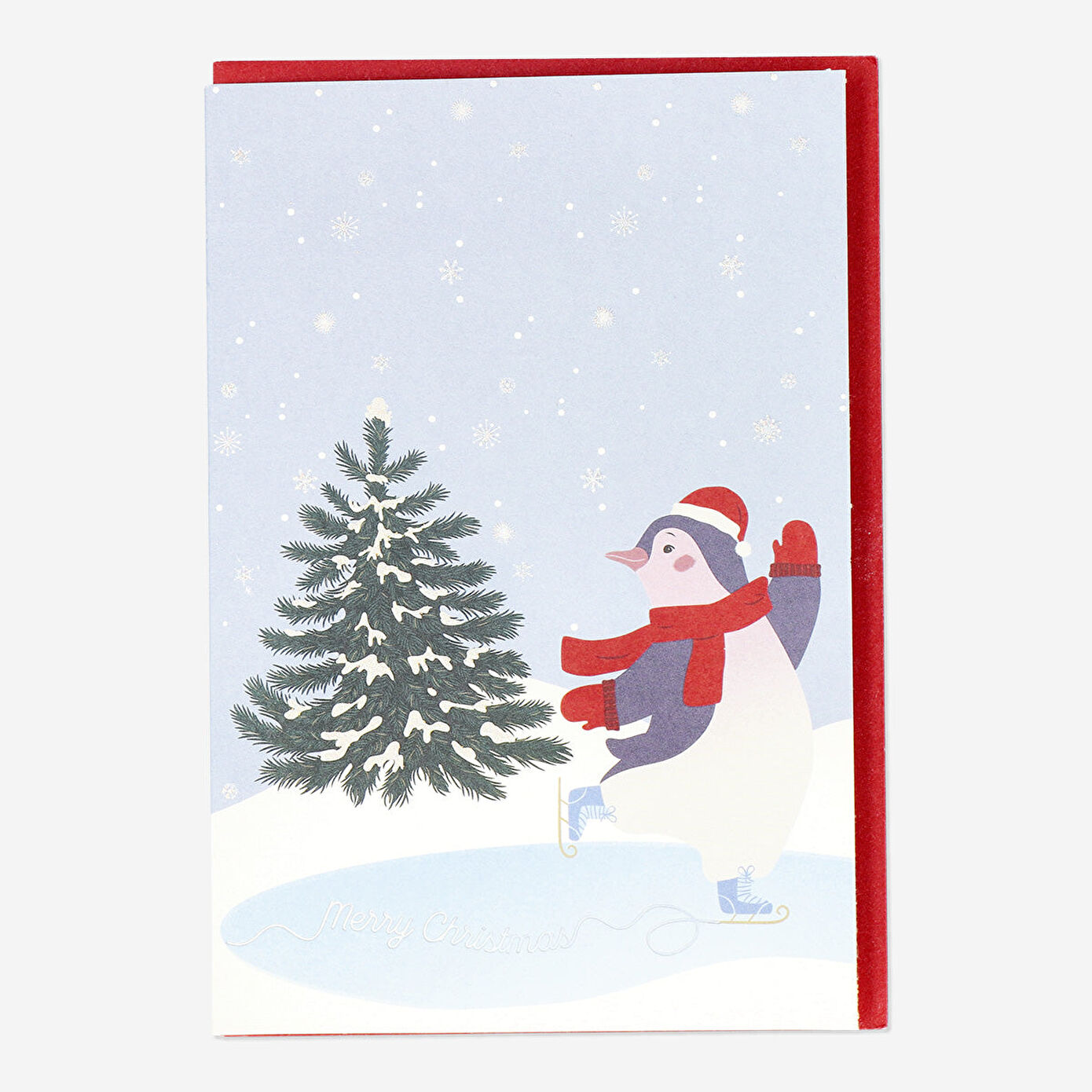 Penguen Desenli Kart, yılbaşı dileklerinizi iletmek için harika bir seçenektir. Kartta, neşeli bir penguenin, şık bir yılbaşı ağacının yanında buz pateni yaparken çizilen sevimli bir illüstrasyon yer alır. Karla kaplı bir arka plan üzerine "Mutlu Yıllar" mesajı yazılmış olan bu çok renkli kart, yılbaşı ruhunu en iyi şekilde yansıtır ve sevdiklerinize mutluluk yaymak için mükemmel bir yoldur.