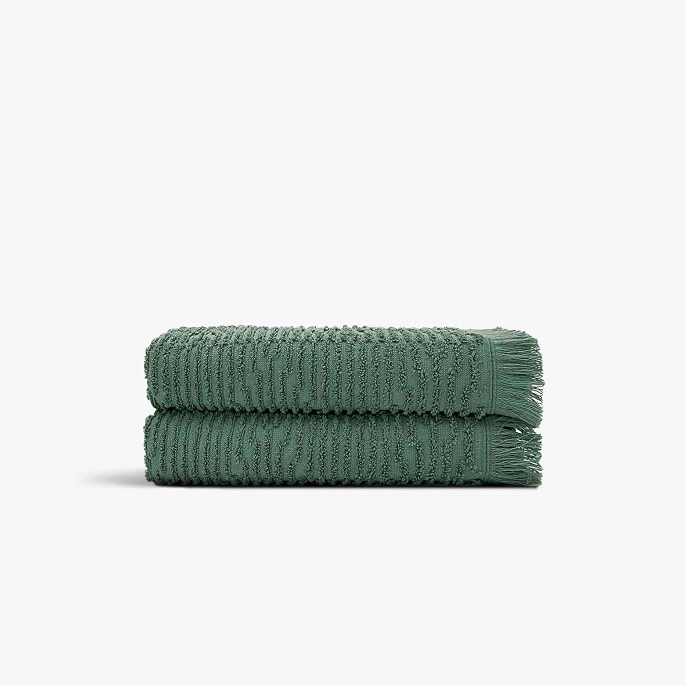 Green Black Anisa 2'li El Yüz Havlusu %100 Pamuk Penye Jakarlı Yeşil 50x90 Cm