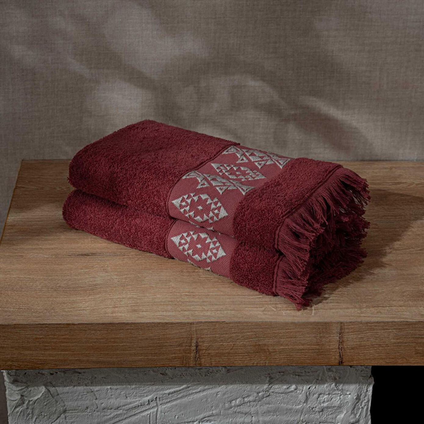 Green Black Hereke 2'li Yüz Havlusu Seti Bordo