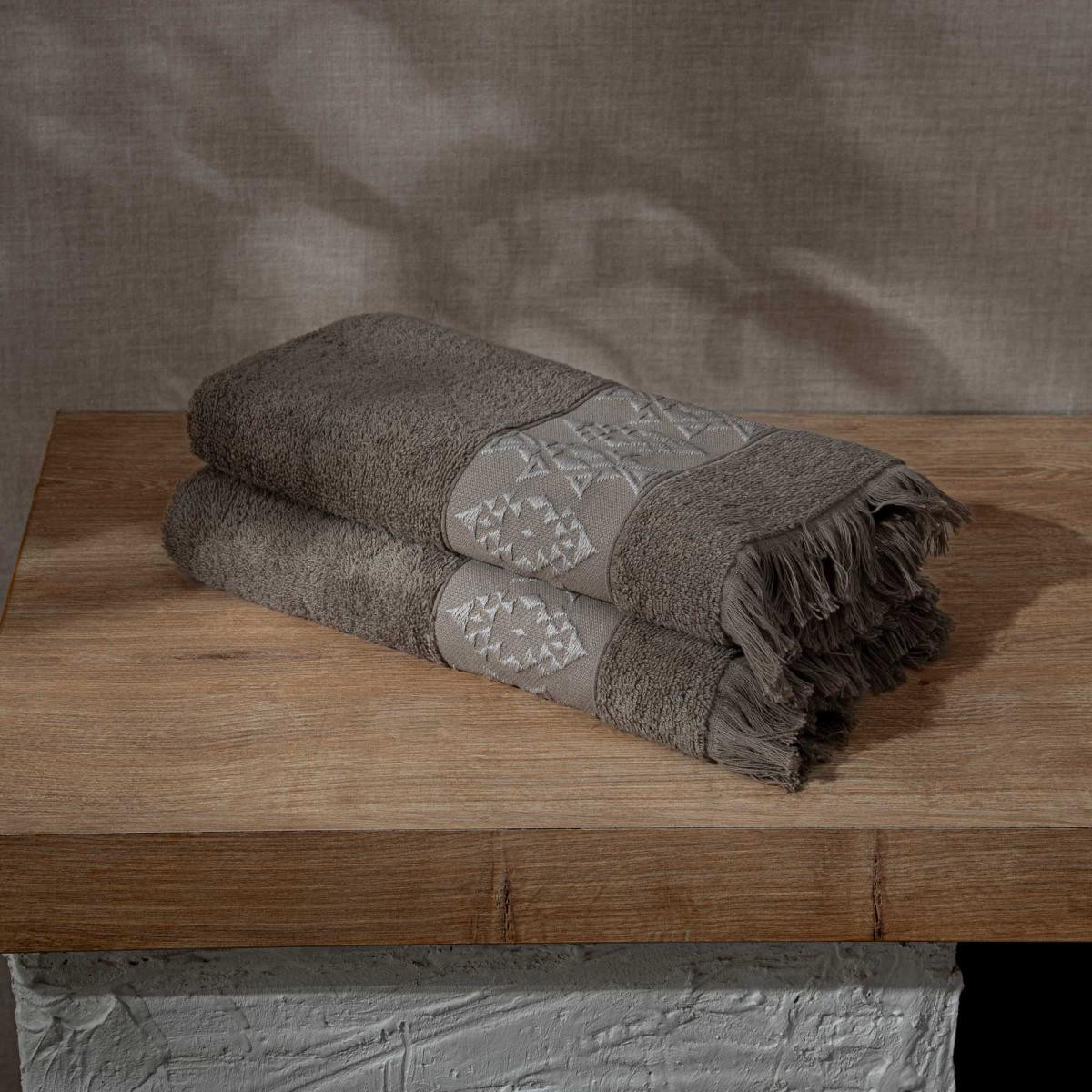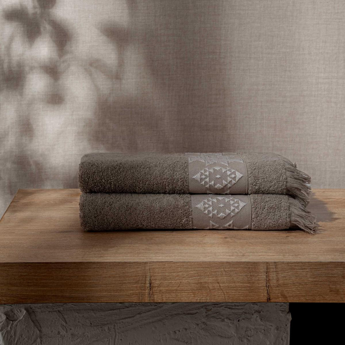 Green Black Hereke 2'li Yüz Havlusu Seti Koyu Bej