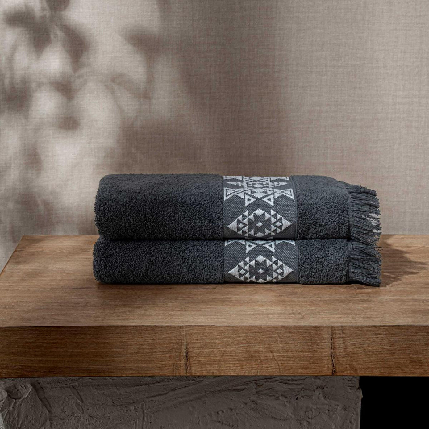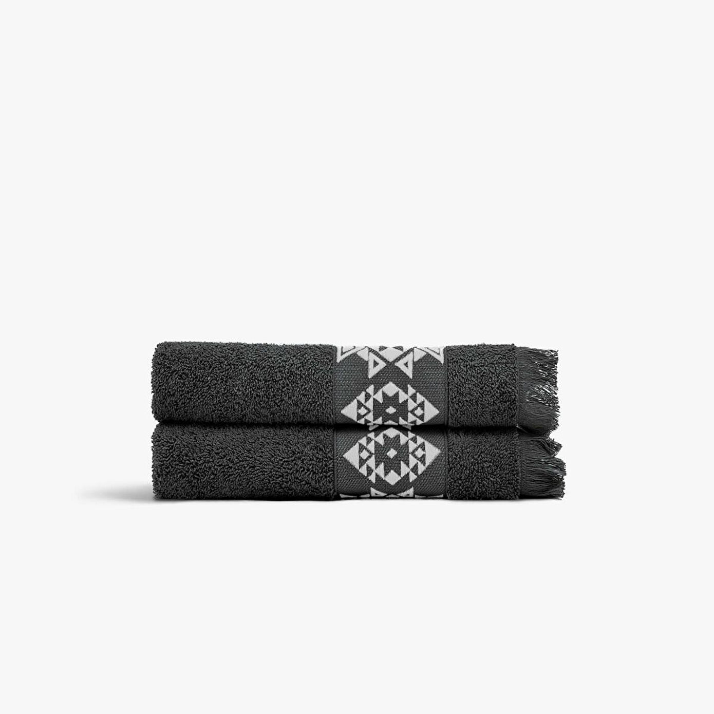 Green Black Hereke 2'li Yüz Havlusu Seti Krem Bordürlü Antrasit