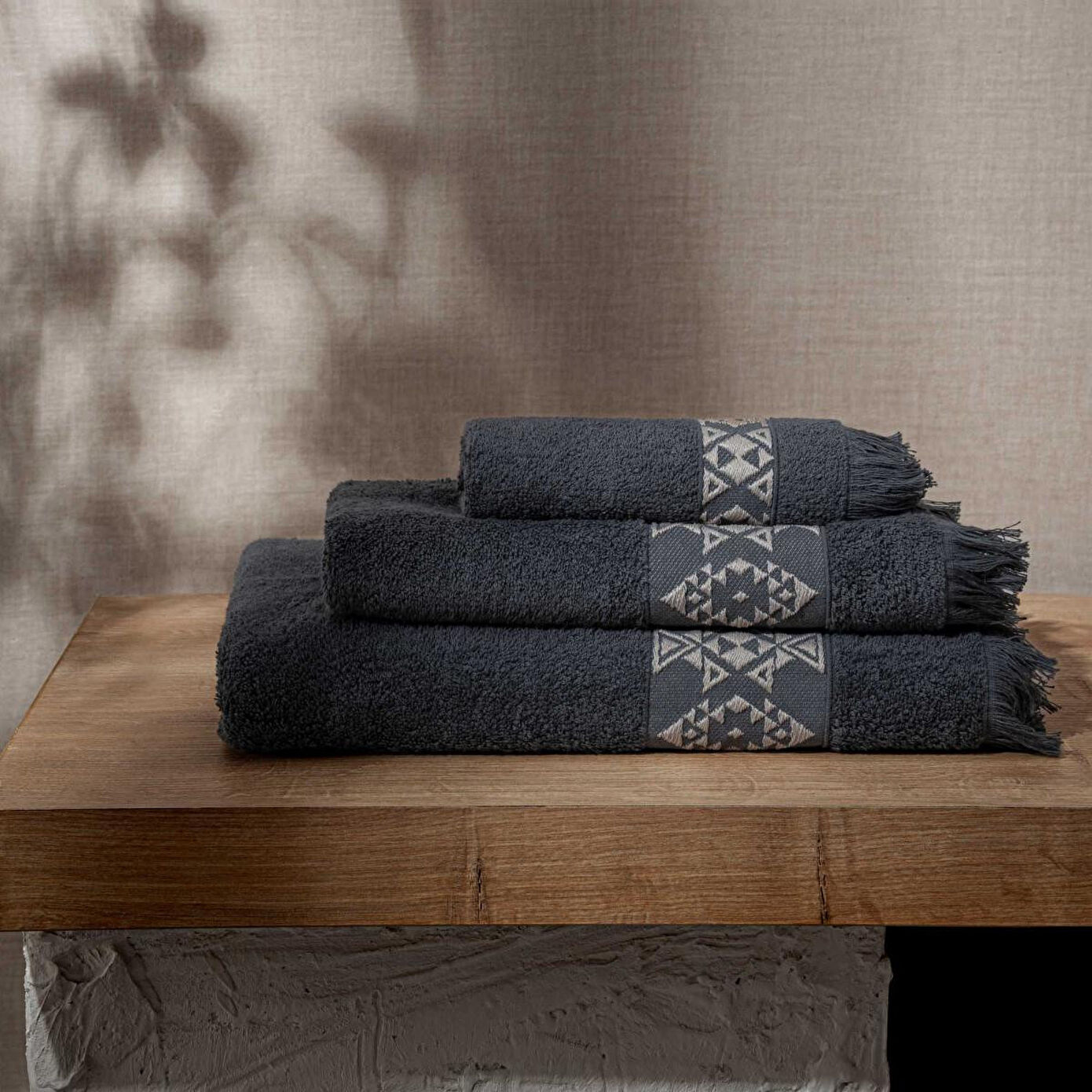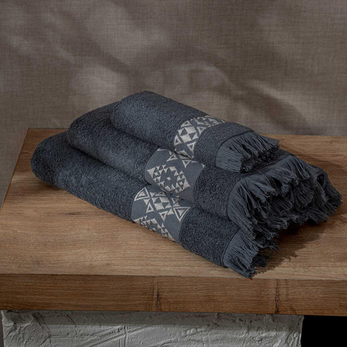 Green Black Hereke 3'lü Havlu Seti Antrasit