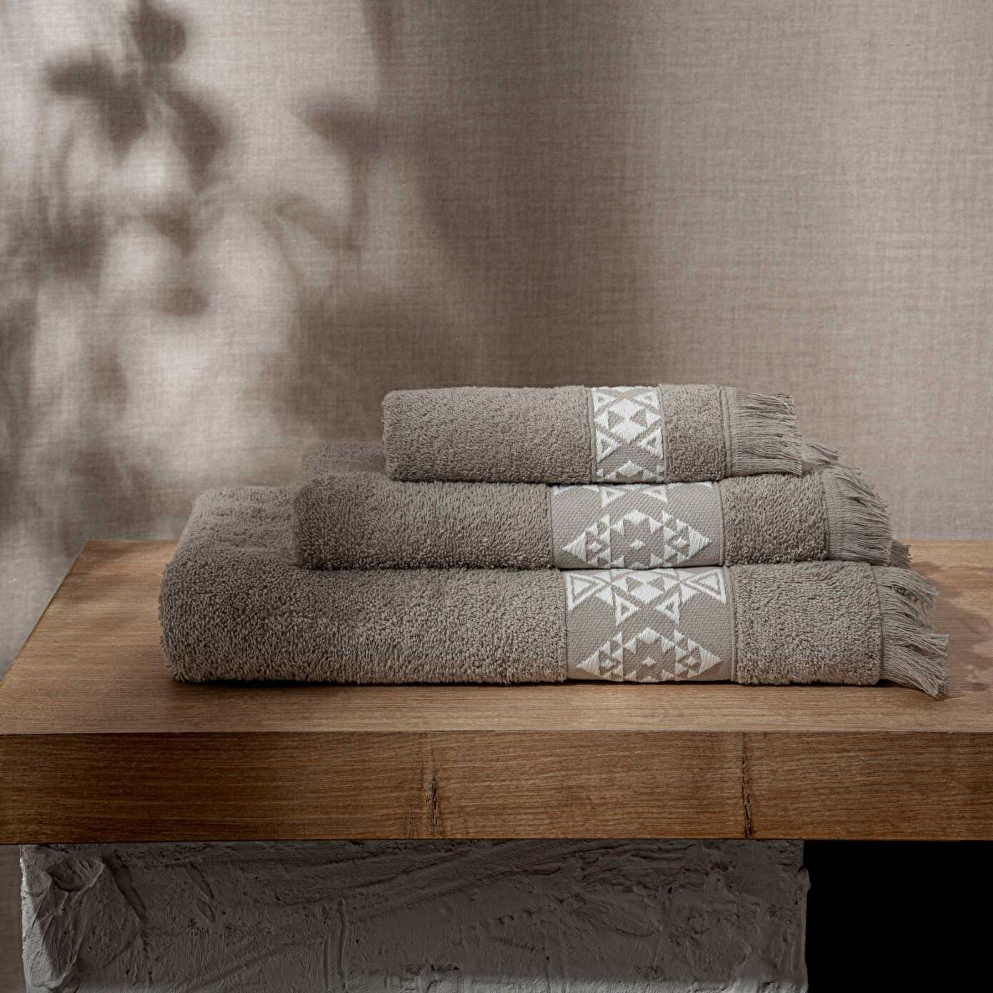 Green Black Hereke 3'lü Havlu Seti Bej