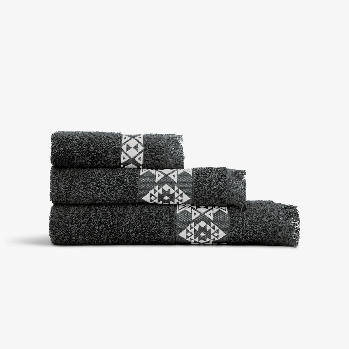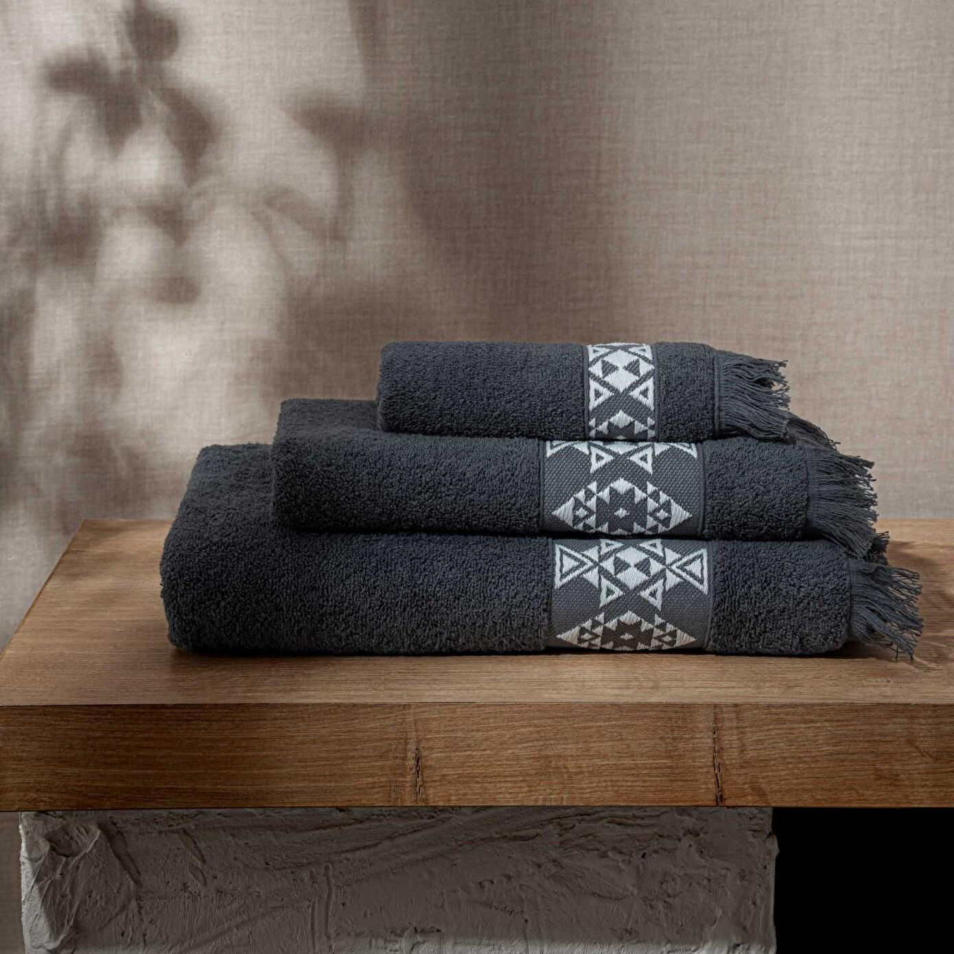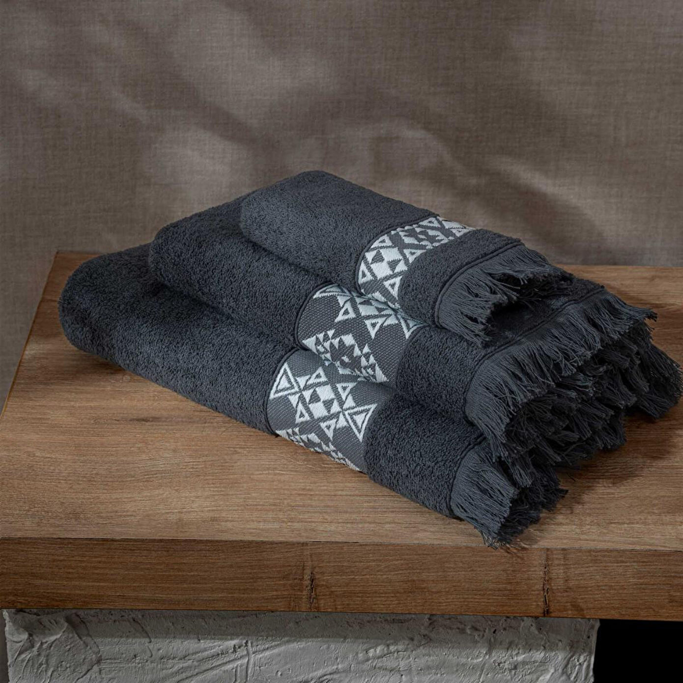 Green Black Hereke 3'lü Havlu Seti Krem Bordürlü Antrasit