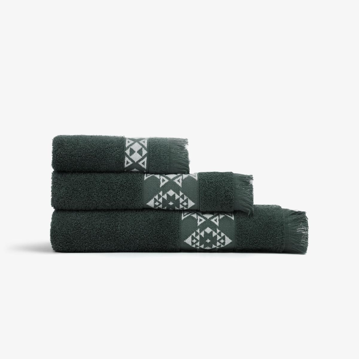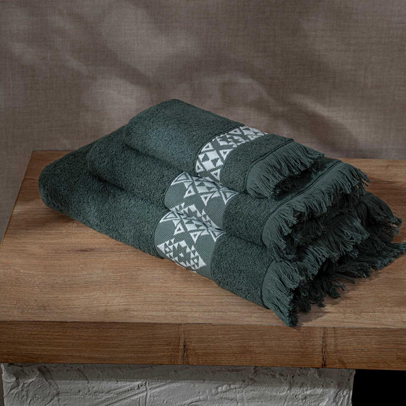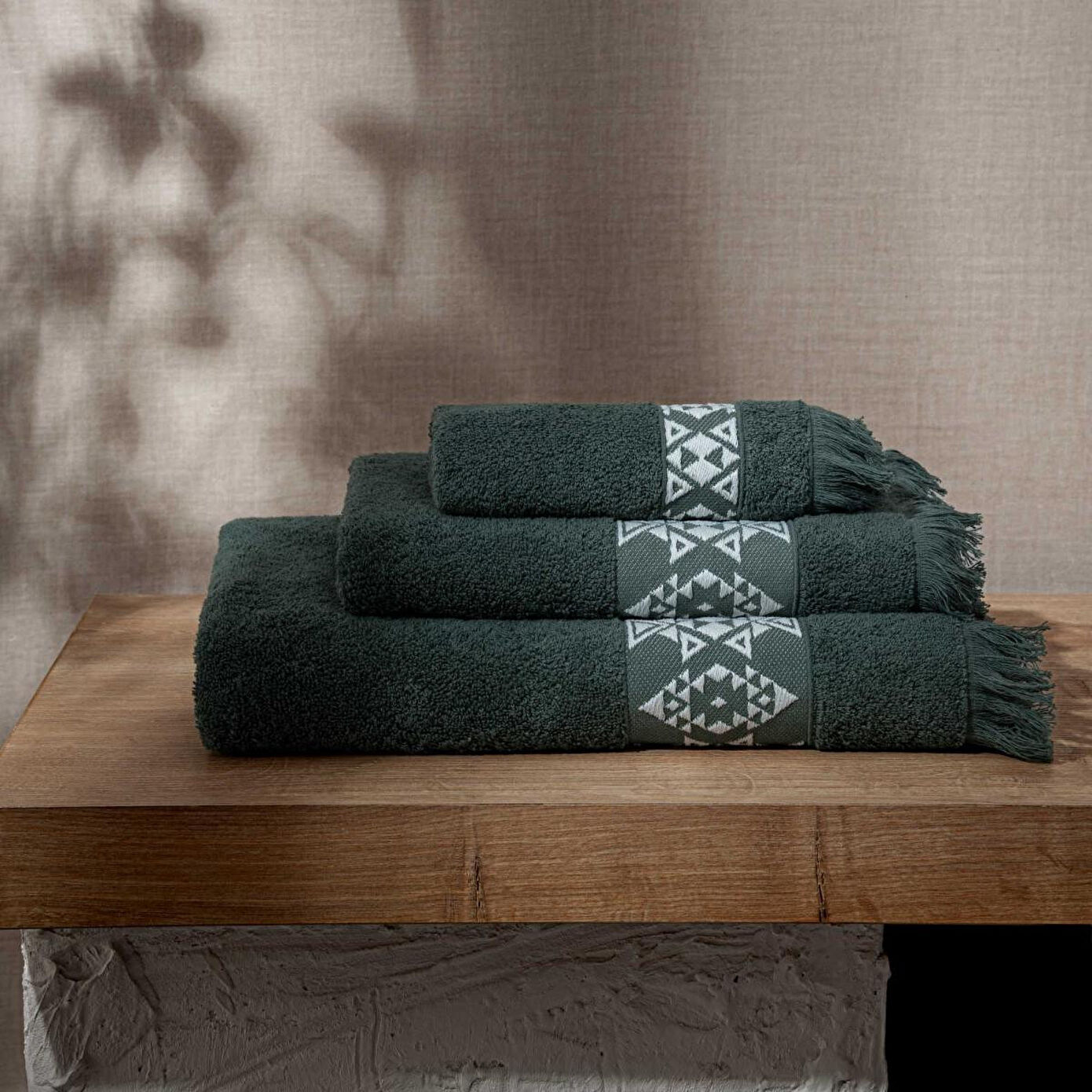 Green Black Hereke 3'lü Havlu Seti Krem Bordürlü Yeşil