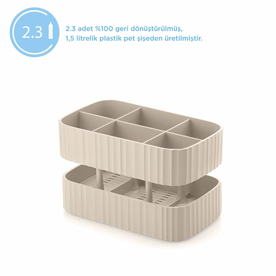 Guzzini 6'lı Kaşıklık Kil Rengi, kaşıkları,çatalları düzenli bir şekilde yerleştirmek için kullanılan ideal bir düzenleyicidir. Temizliği kolaydır, bulaşık makinesinde yıkanabilir. Bakteri üremesini azaltan antibakteriyel plastikten yapılmıştır ve 2,3 PC %100 tüketici atığı plastik deterjan şişelerinden elde edilmiştir.