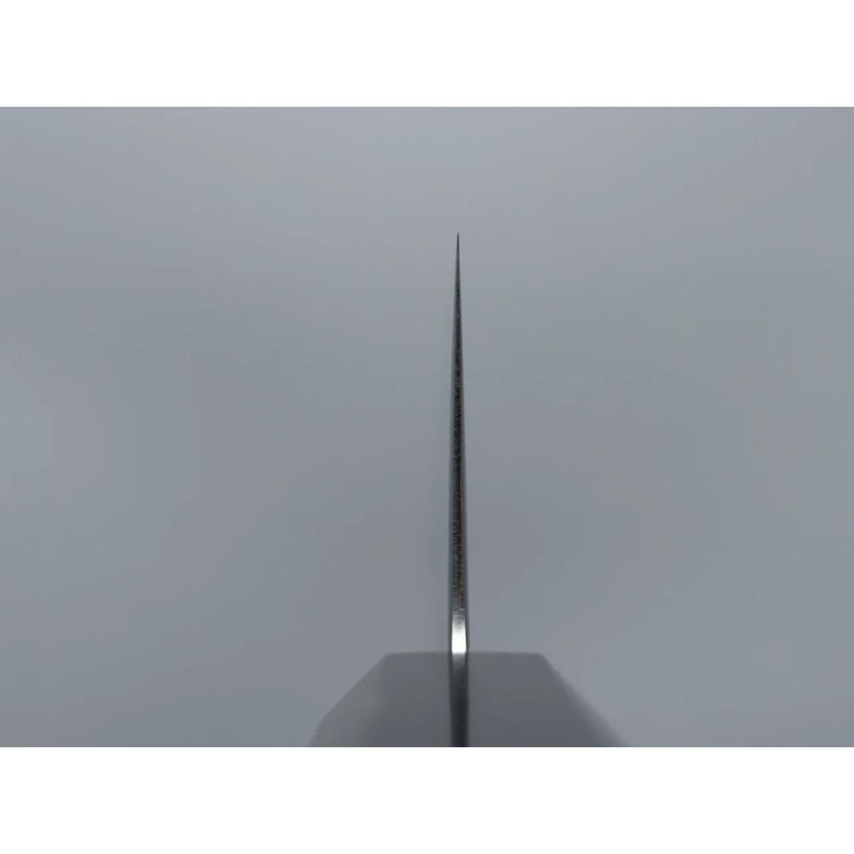 Hatsukokoro SLD Santoku, Japon mutfak bıçakları geleneğine modern bir yorum getiren, hafif yapısı ve olağanüstü kesim performansıyla dikkat çeken bir modeldir. Aynalı yüzeyi ve zarif görünümüyle hem göz alıcı hem de işlevsel bir şef yardımcısıdır. İnce profili sayesinde mutfakta adeta bir "lazer" gibi çalışan bu bıçak, hafifliği ve yüksek keskinliğiyle kullanıcıya benzersiz bir deneyim sunar. Çelik: SLD Hikari Santoku’nun çekirdek çeliği, yaklaşık 61 HRC sertliğe sahip modern bir karbon çeliği olan SLD’dir. SLD, keskinliğini uzun süre korurken aynı zamanda kolay bileyleme avantajı sunar. Dış katman ise paslanmaz çelikten oluşur ve böylece bakım gereksinimini azaltır. Karbon çeliğe geçiş yapmak isteyenler için mükemmel bir başlangıç çeliğidir. Sap: Japon Tipi (Wa) - Sekizgen Bıçak, sekizgen (octagonal) formlu siyah ceviz ağacı sap ile donatılmıştır. Hem sağ hem de sol el kullanıcıları için uygundur. Şık ve sade tasarımı ile bıçağın zarif yapısını tamamlar. Yüzey İşlemi: Mirror Bıçağın çekirdek çeliğinde aynalı parlatma işlemi uygulanmış olup, dış katmanlarda hafif bir migaki (mat) yüzey mevcuttur. Bu kontrastlı yüzey işlemi hem estetik bir görünüm sunar hem de ışık altında çarpıcı bir yansıma yaratır. Laminasyon: San-Mai Hikari Santoku, dayanıklılığı ve esnekliği arttırmak amacıyla San-mai laminasyon yöntemiyle üretilmiştir. Sert SLD çekirdek çelik, iki paslanmaz dış çelik katman arasında yer alır. Bu yapı, hem uzun ömürlü kullanım hem de daha kolay bakım avantajı sağlar. Geometri: Double Bevel Bıçak, çift taraflı (50/50 simetrik) bileme ile üretilmiştir. 1.85 mm kalınlığındaki omur yapısı ve yalnızca 1.1 mm uç kalınlığı ile tam bir "lazer" profiline sahiptir. Toplam uzunluğu 315 mm, ağırlığı ise yalnızca 138 gramdır. İnce yapısı sayesinde son derece hassas kesimler yapılabilir. Üretici: Hatsukokoro Japonya’nın seçkin bıçak üreticilerinden biri olan Hatsukokoro, yüksek kaliteli işçilik ve malzeme kullanımıyla tanınır. Hikari serisi, markanın modern tasarım ve geleneksel ustalığı birleştirdiği özel serilerden biridir.