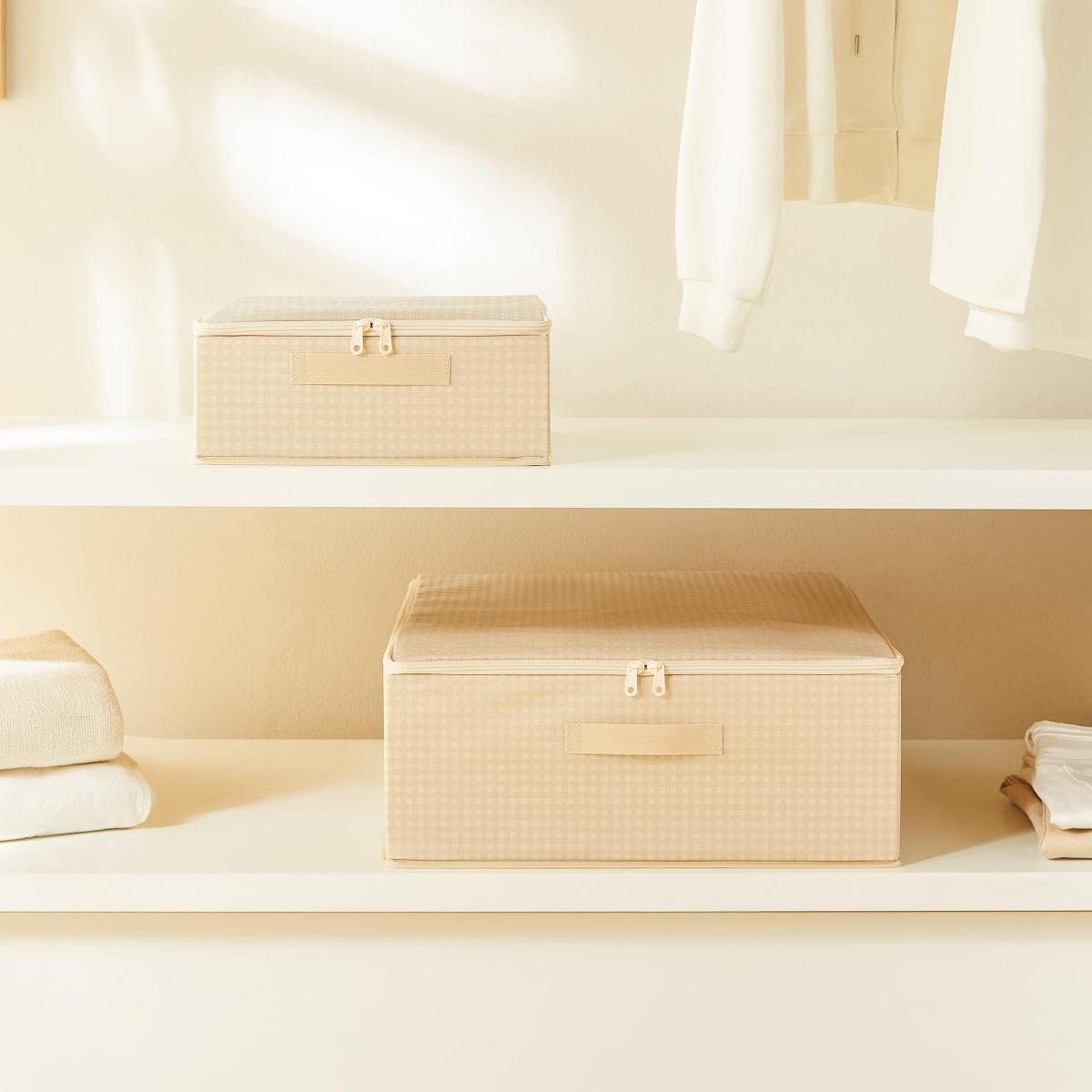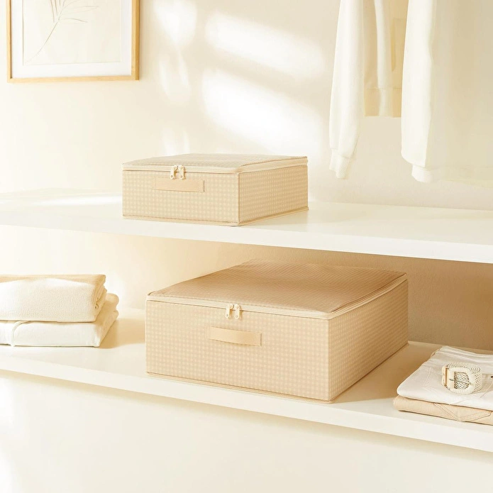 Kıyafetlerden, nevresimlere, havlulardan diğer ev tekstili ürünlerine kadar geniş yelpazedeki tüm ürünleri güvenle saklayabileceğiniz pratik, şık ve dekoratif destekli kutu hurç.