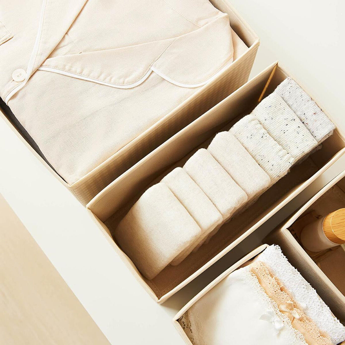 Çorap, iç çamaşırı, kravat, kemer, bebek eşyaları ve birçok ürünü, dağınıklığa yol açmadan kolayca düzenlemek amacıyla kullanılabilir.