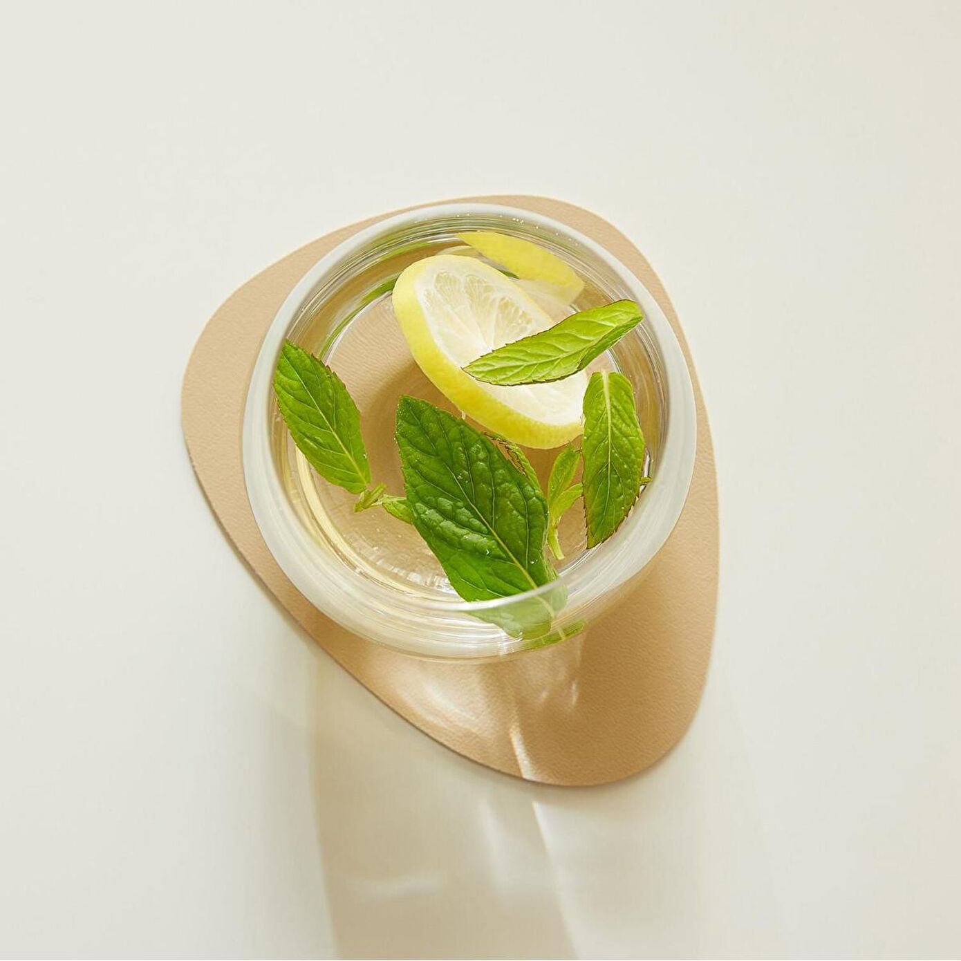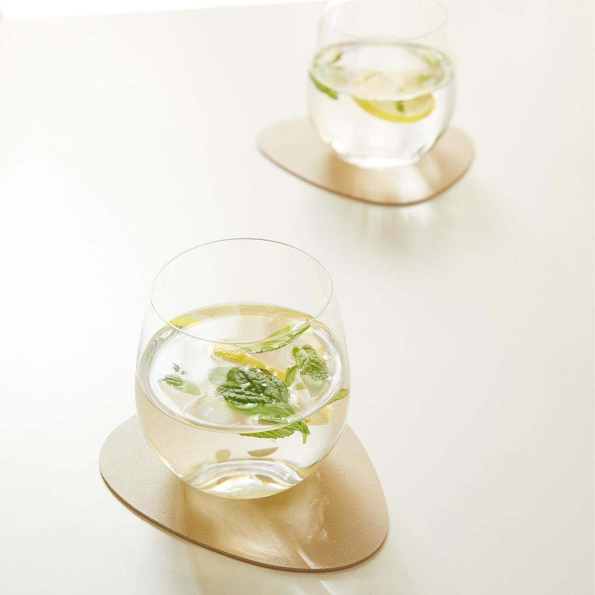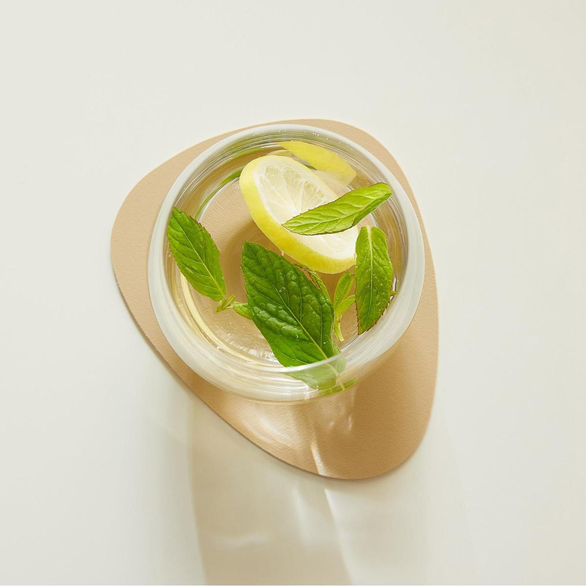 Suni deri bardak altlığı çift taraflı kullanıma uygundur. Aynı malzemeden üretilen amerikan servisi ile kombinlenebilir.