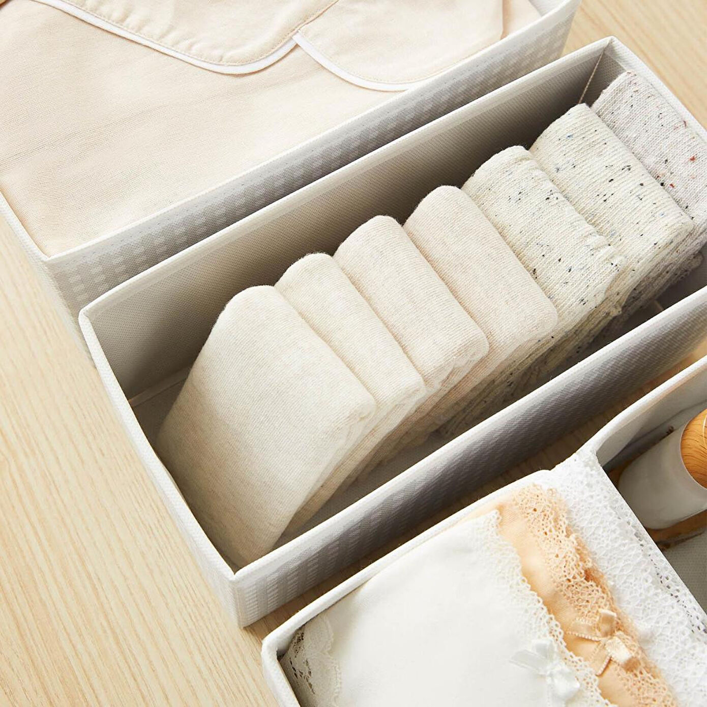 Çorap, iç çamaşırı, kravat, kemer, bebek eşyaları ve birçok ürünü, dağınıklığa yol açmadan kolayca düzenlemek amacıyla kullanılabilir.