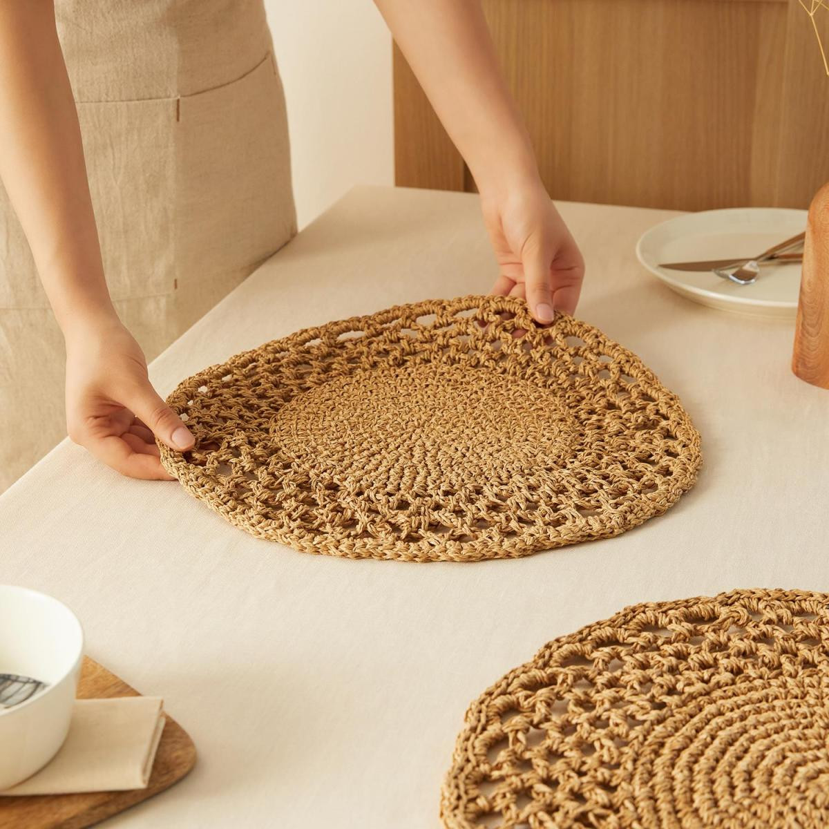 El örgüsü amerikan servis rafya lifleri; yumuşak, esnek, hafif ve doğada biyolojik olarak çözünebilen bir ipliktir. Yaşam alanlarınızda dekoratif bir görünüm kazandırmak ve doğal bir doku yaratmak istiyorsanız, el örgüsü amerikan servislerini tercih edebilirsiniz.