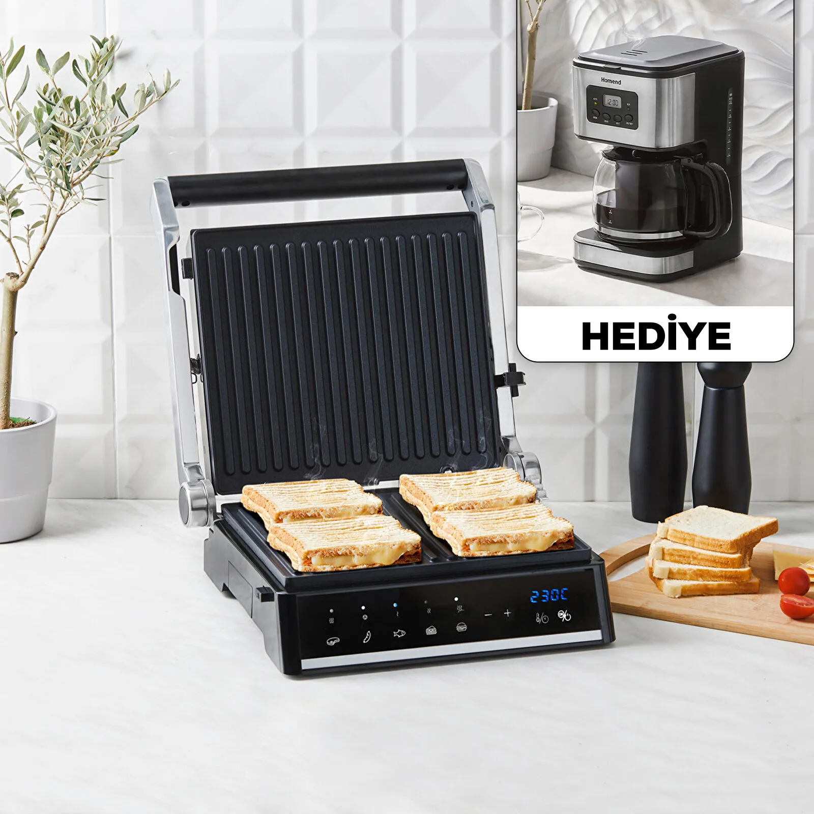 Homend Grilliant 1341H Inox Gövdeli, Döküm Plakalı, 5 Programlı, Led Ekranlı Tost ve Izgara Makinesi