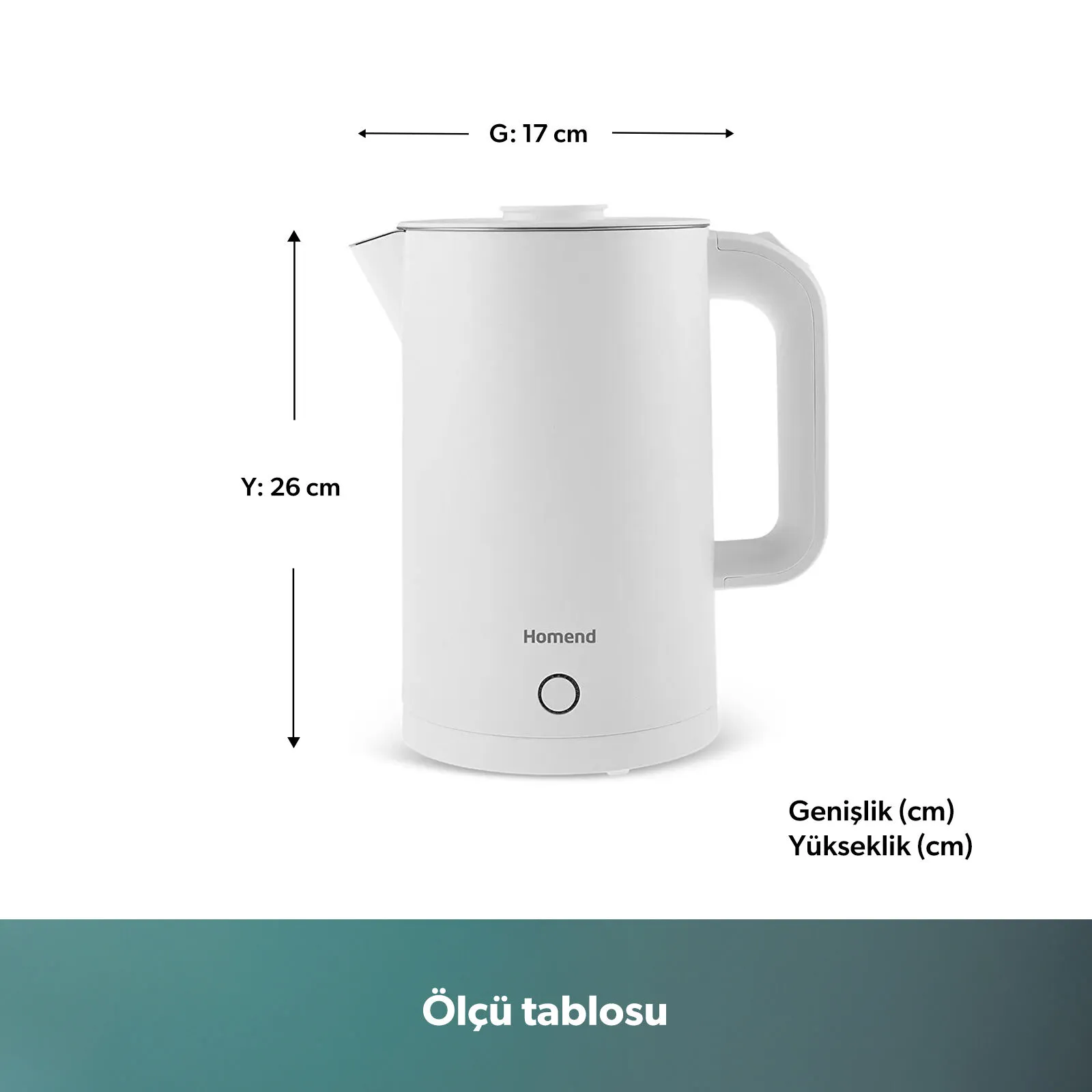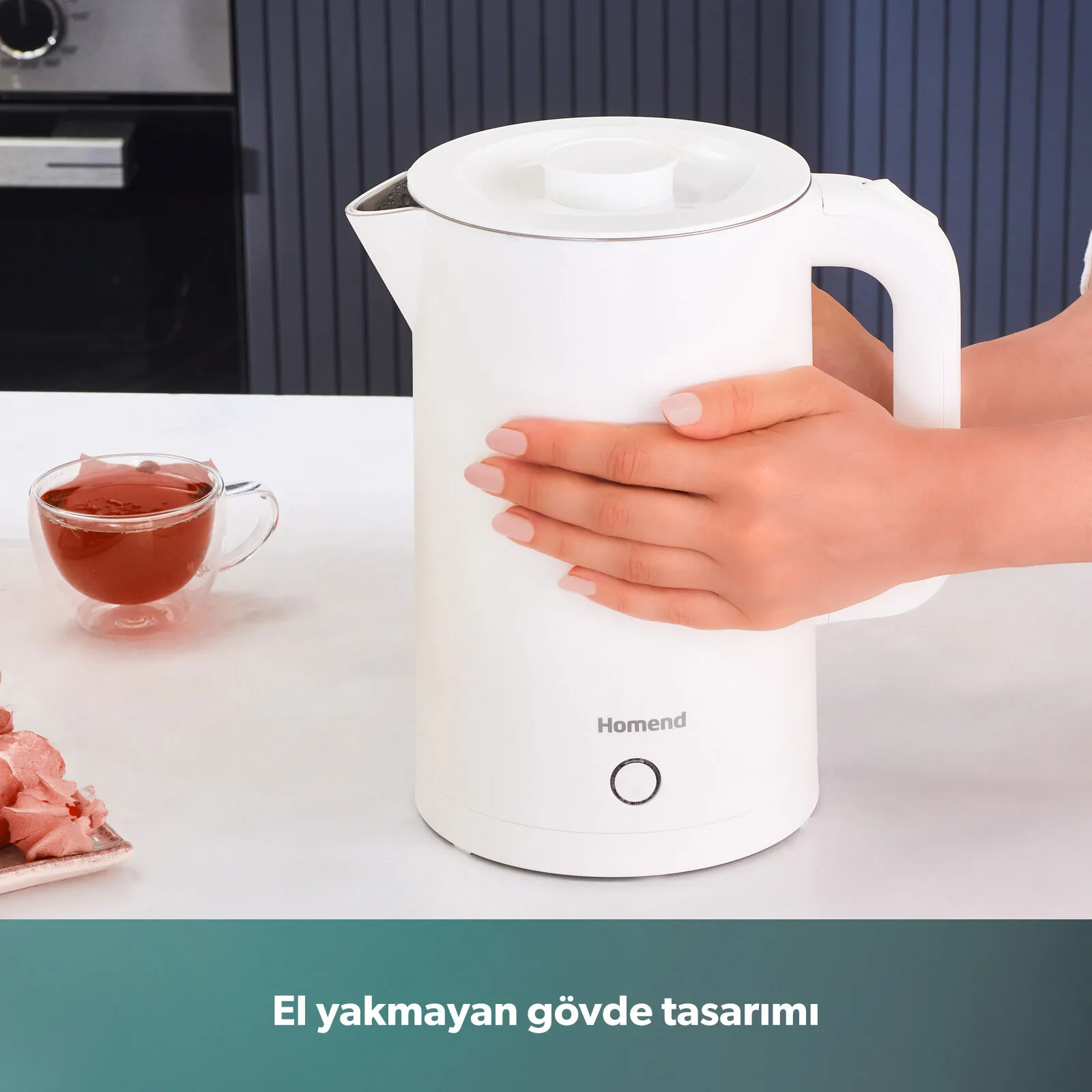 Homend Heatrow Cooltouch 1618H Paslanmaz Çelik El Yakmaz Gövdeli Su Isıtıcısı Beyaz