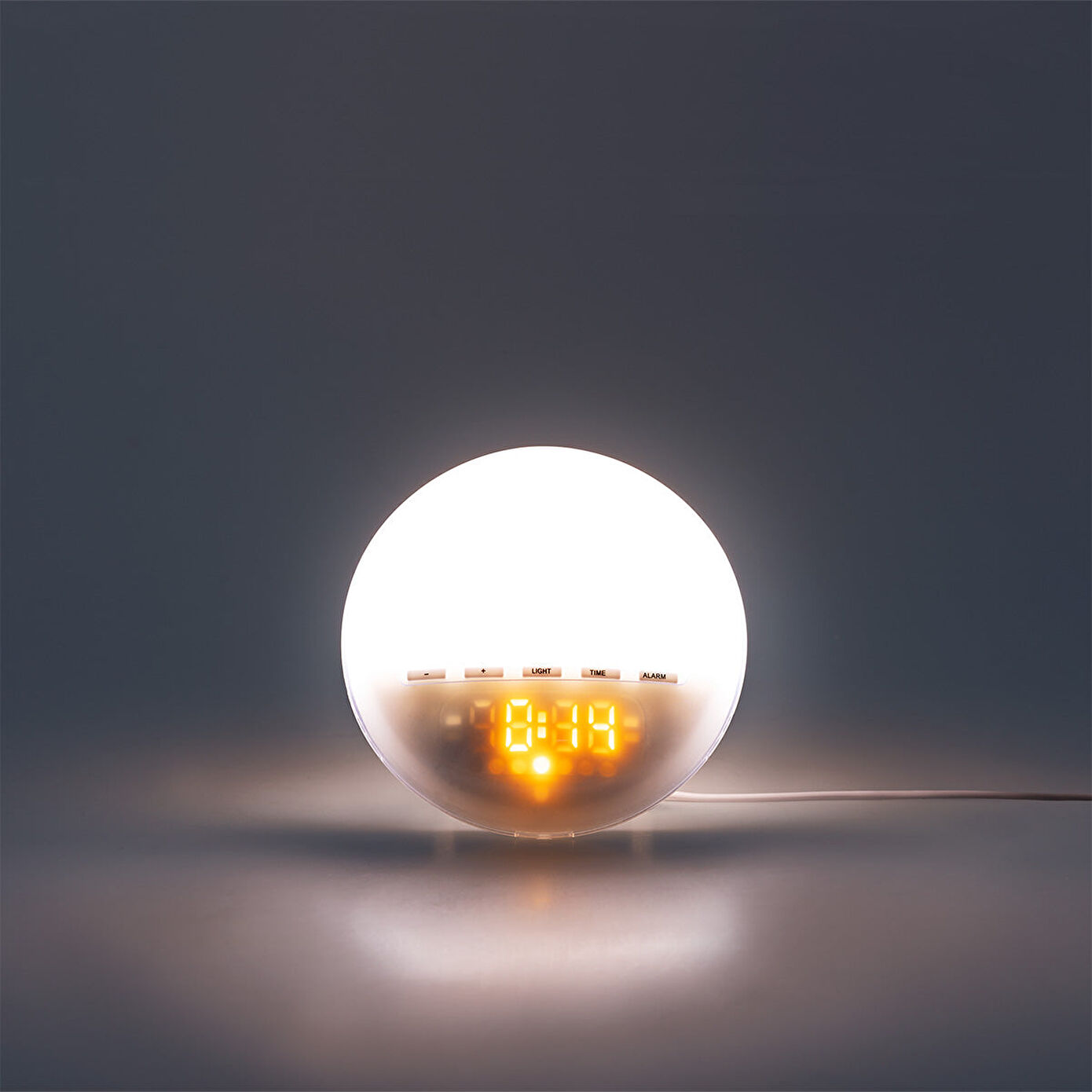 Gün Işığı Modlu Alarmlı Saat, sabahlarınıza huzurlu bir başlangıç yapmanızı sağlayacak modern ve işlevsel bir yatak odası aksesuarıdır. Yatıştırıcı gün doğumu ışığı özelliğiyle, doğal bir gün doğumunu taklit ederek kademeli olarak aydınlanır ve güne enerjik bir şekilde başlamanıza yardımcı olur. Kompakt 14 x 4,7 cm boyutlarıyla her türlü komodine mükemmel uyum sağlar ve yatak odanıza şık bir dokunuş katar.