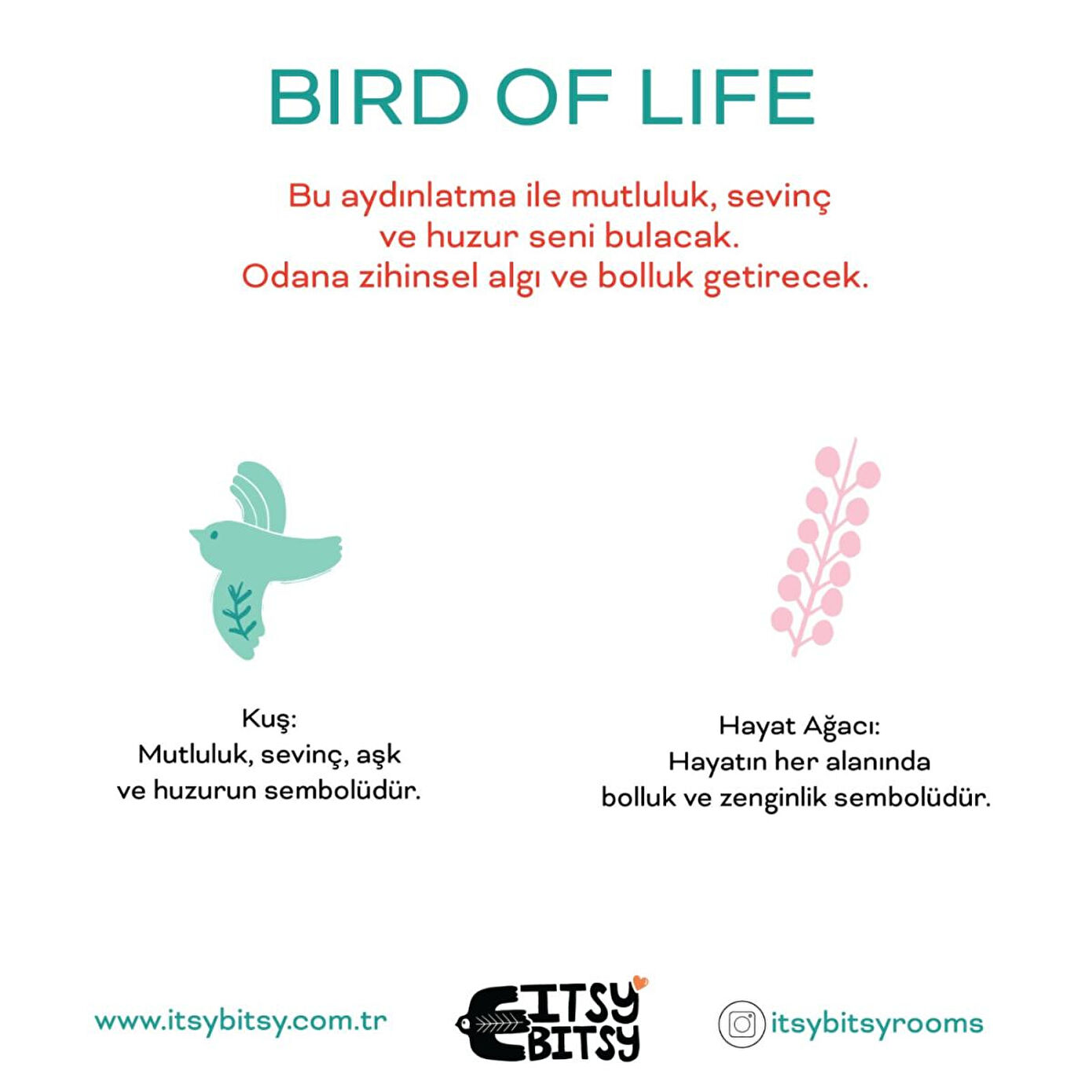 ItsyBitsy Kids Kitolian serisi, Anadolu desenlerinin çocuk ruhuna uyarlanmış halleri ile odalarınıza neşe, bereket, yaratıcılık, güç ve pozitif enerji getirir. Çocuk ve bebek yaşam alanlarını tasarlarken, odanın temasını tamamlayacak doğru aydınlatma, onların huzurlu ve keyifli vakit geçireceği alanlar yaratmanın en önemli unsurlarından biridir. Ürün Özellikleri: • Neşeli ve Canlı Renkler: ItsyBitsy Bird of Life Başucu Aydınlatmaları, canlı mint yeşili tonu ve özgün tasarımı ile odalara sıcacık bir atmosfer katar. • Anadolu Esintileri: Geleneksel Anadolu desenlerinin çocuk ruhuna uygun modern yorumları, çocuk odalarına benzersiz bir karakter kazandırır. • Yaratıcı ve Stil Tamamlayıcı Işık: Hem estetik hem de işlevsel olan bu aydınlatmalar, odanın dekorasyonunu tamamlar ve çocuğunuzun yaşam alanına yaratıcılık katar. • El Yapımı Tasarımlar: Her bir aydınlatma, el işçiliği ile özenle üretilmiştir ve her parça kendine has bir dokunuş taşır. Kombinleme İmkanları: • Uyumlu Halı ve Nevresim Takımları: Aynı temalı halı ve nevresim takımları ile odanın dekorasyonunu tamamlayabilirsiniz. • Mix & Match Seçenekleri: Farklı desenleri karıştırarak çocuğunuzun odasında eğlenceli kombinasyonlar oluşturabilirsiniz. • Modüler Mobilyalar: ItsyBitsy Kids koleksiyonundaki el yapımı mobilya takımları, halı, nevresim ve aydınlatmalarla uyumlu şekilde kombinlenebilir. Ek Bilgiler: • Masa Aydınlatma Başlıkları: Metal ayaklar hariç satılmaktadır. • Eğlenceli Kombinasyonlar: Koleksiyondan seçeceğiniz metal ayakların renklerini dilediğiniz gibi seçerek, kendi eğlenceli kombinasyonlarınızı yaratabilirsiniz. Bird of Life Başucu Aydınlatması ile çocuk odalarına sadece ışık değil, aynı zamanda güvenli ve yaratıcı bir atmosfer kazandırın!