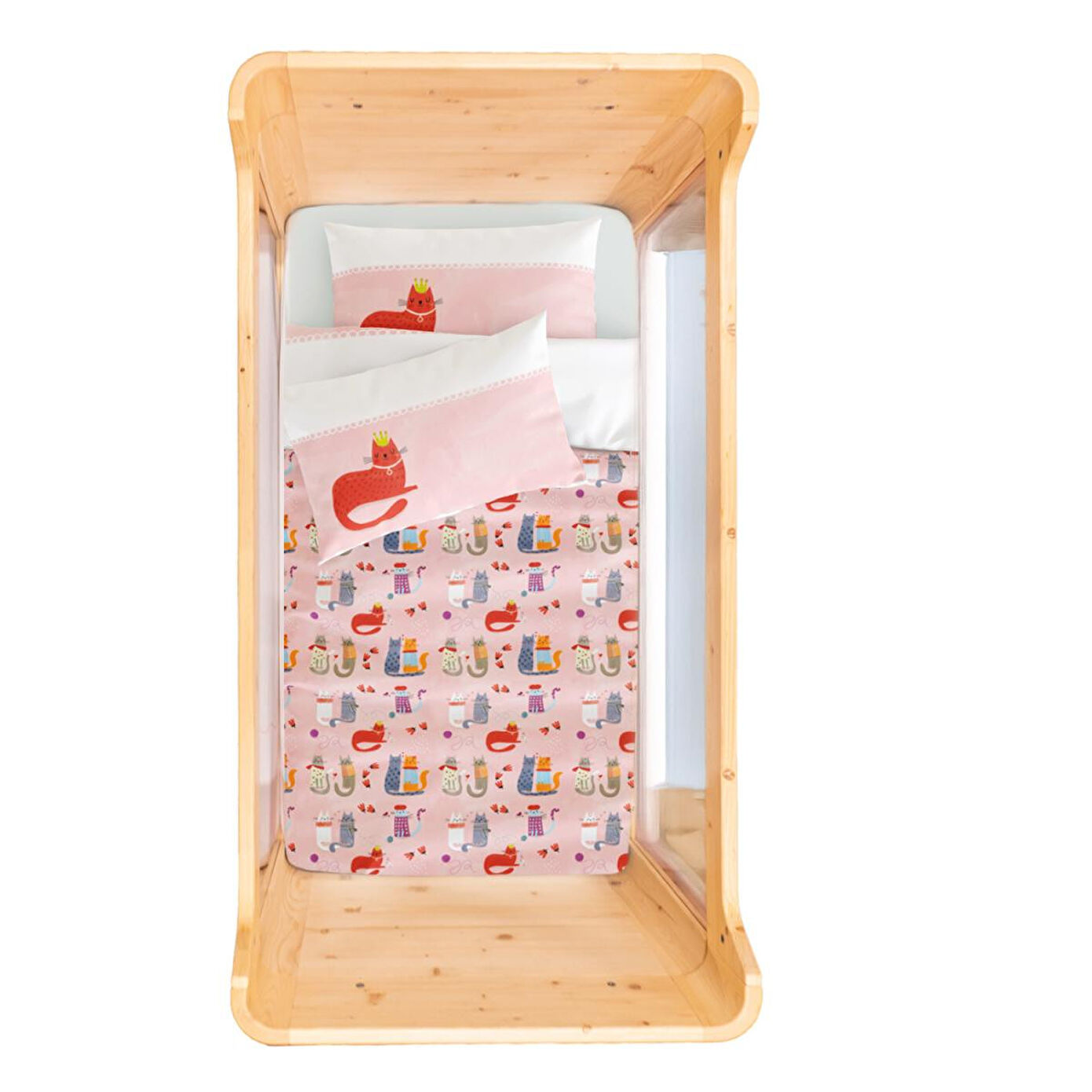 Itsy Bitsy Kids Kitty Of Queens Çift Taraflı Pamuk Saten Pembe Bebek Nevresim Seti 100x150cm