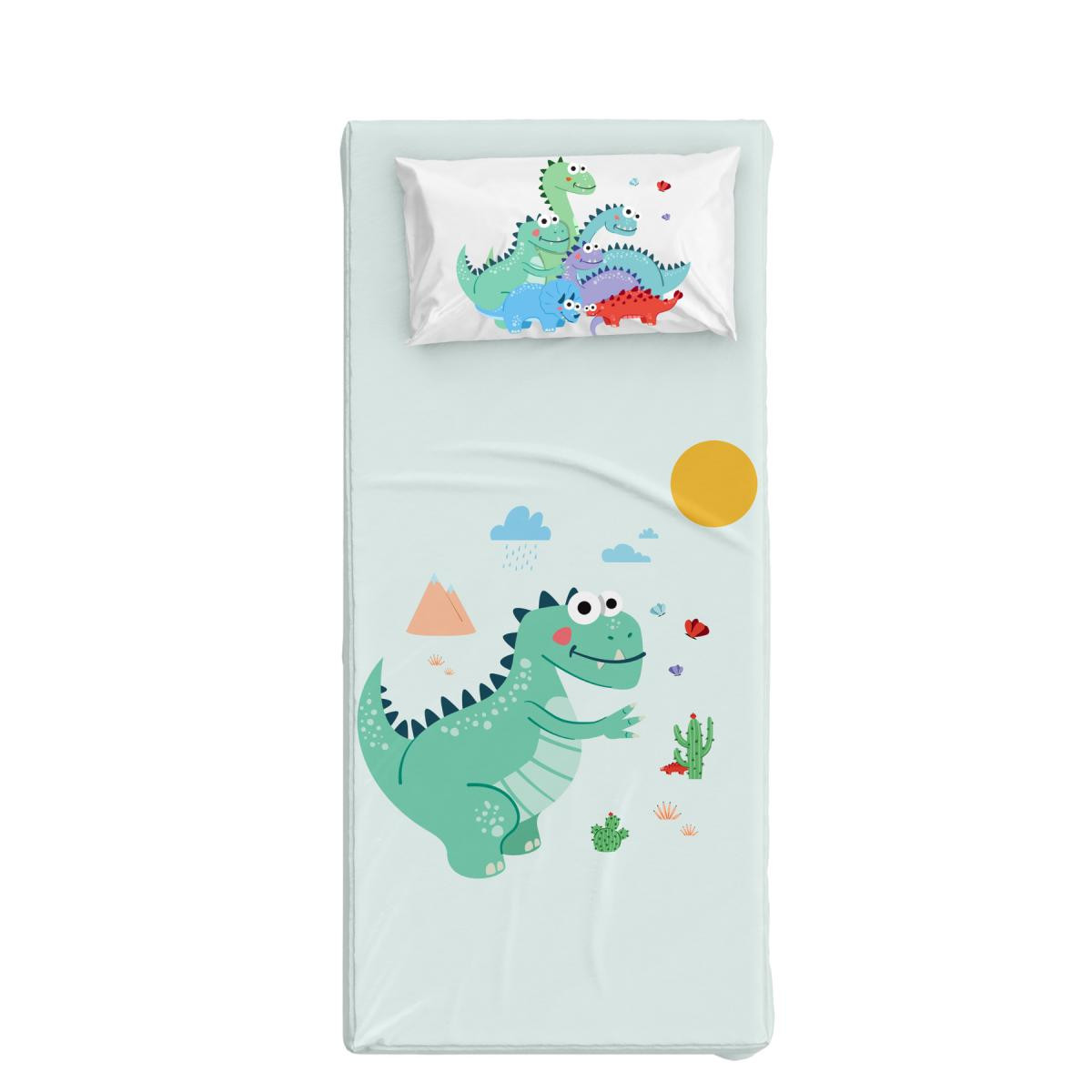 Itsy Bitsy Kids Organik Tek Kişilik Lastikli Çocuk Çarşaf Seti - Dinazor Desenli - Dinotopia Serisi