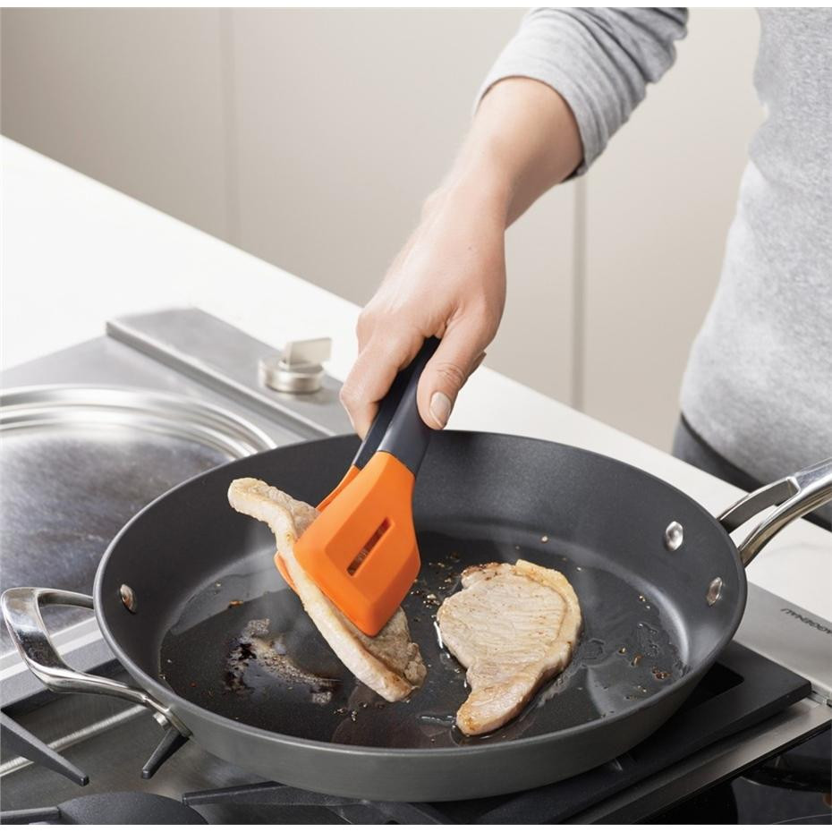 Bu ergonomik mutfak gereci, normal mutfak maşalarının işlevini yassı çeviricinin pratikliğiyle birleştirir ve en hassas yiyecekleri bile kolayca kaldırıp çevirebilmenizi sağlar. Açısı dikkatle hesaplanmış kolları, geniş ve düz uçlarıyla et, köfte, hatta büyük balık filetosunun bile  altına girebilir. Silikon uçları yapışmaz yüzeylerde kullanılabilir ve 270ºC'ye kadar dayanıklıdır. İç içe geçerek kilitlenen kolları sayesinde az yer kaplar. Bulaşık makinesinde yıkanabilir.