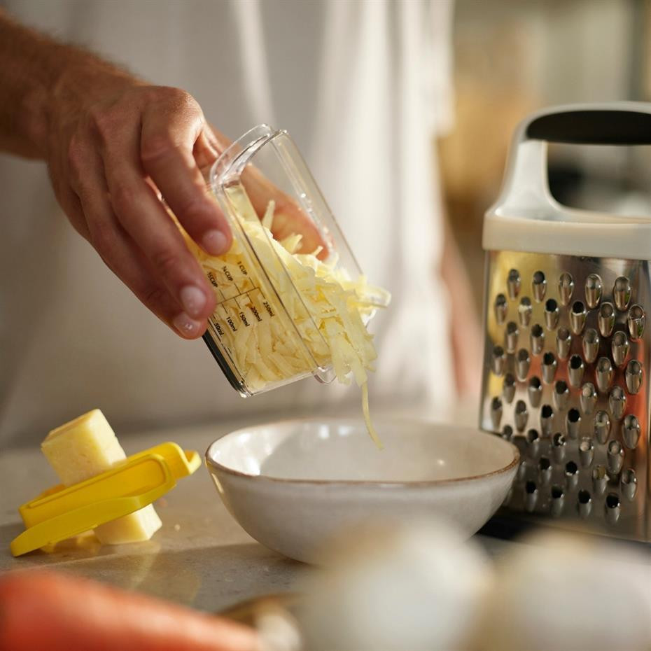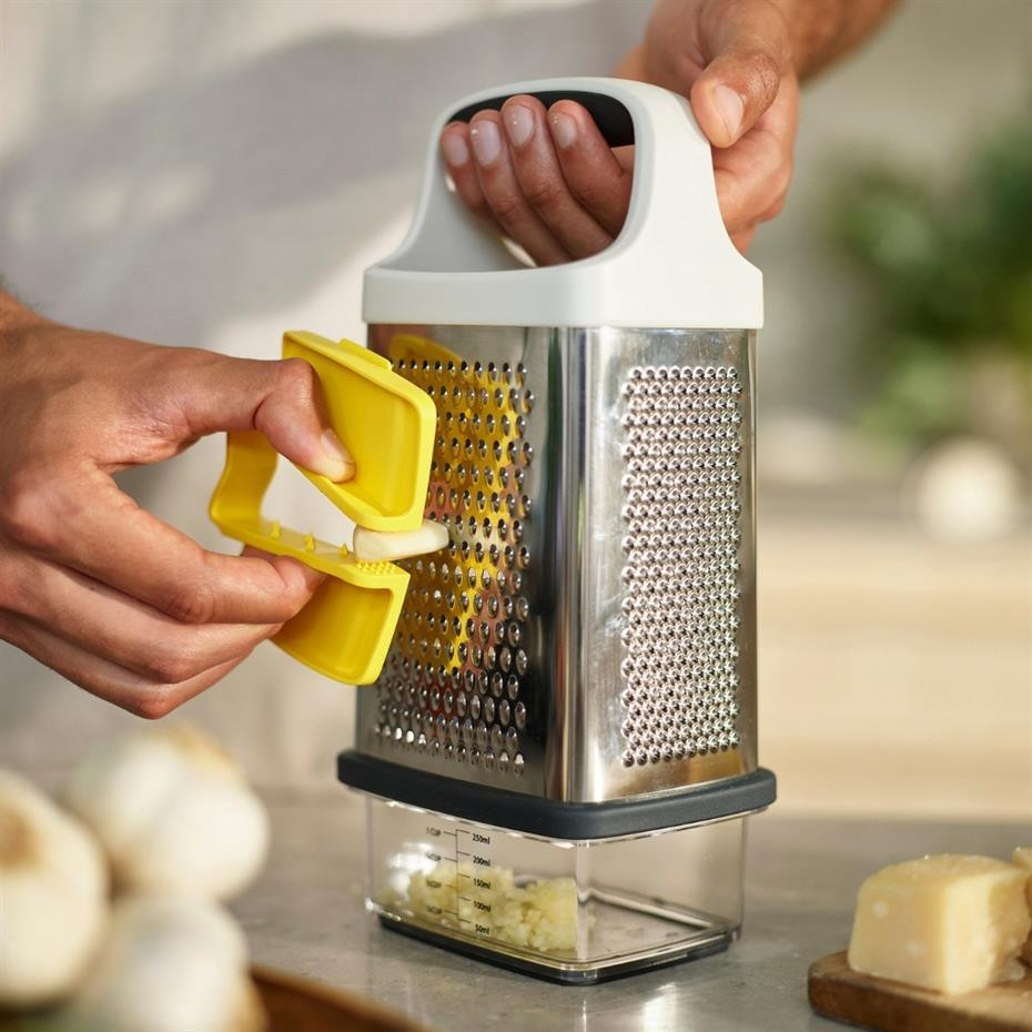 Ürün Özellikleri:Precision Food Grip: Bu özellik, küçük yiyecekleri sıkıştırmanıza ve daha büyük yiyecekleri kavramanıza olanak tanır. Ayrıca, parmaklarınızı kesme riskinden korur.Dört Paslanmaz Çelik Bıçak: Bu bıçaklar, yiyecekleri rendelemek veya dilimlemek için kullanılabilir.Ergonomik Sap ve Kaymaz Taban: Bu özellikler, rendenin kullanımını kolaylaştırır ve sabit tutar.Ölçümlü ve Şeffaf Hazne: Bu hazne, rendelediğiniz yiyecek miktarını görmenizi sağlar.Kompakt Depolama: Kullanımdan sonra, hazneyi rendenin içine yerleştirebilirsiniz.Geri Dönüştürülebilir: Ürün, geri dönüştürülebilir malzemelerden üretilmiştir.Bakım ve Kullanım:Rende ve yiyecek kavrama bölümü bulaşık makinesinde yıkanabilir.Hazne bölümü sadece elle yıkanmalıdır.Keskin bıçaklar nedeniyle, kullanım ve temizlik sırasında parmaklarınızı bıçaklardan uzak tutun.Ölçüler: