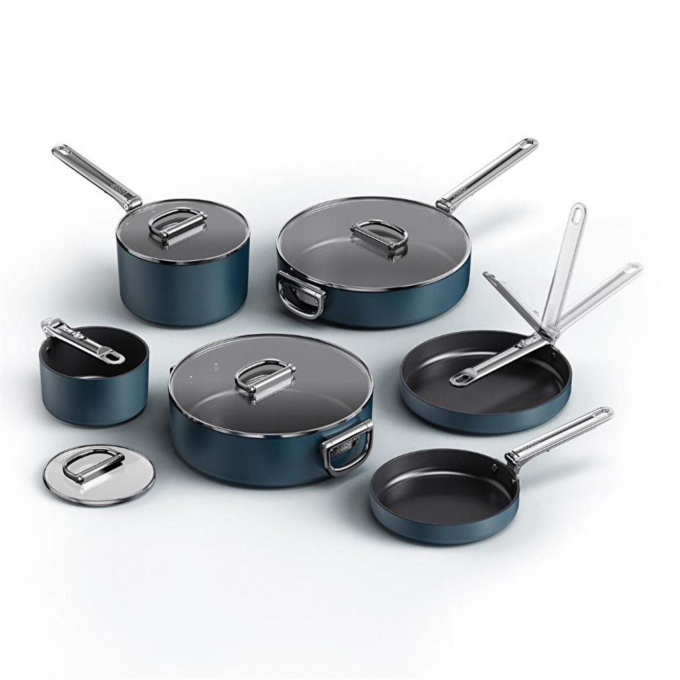 Space tencere ve tavaları, şık ve modern bir tasarıma sahiptir. Gece mavisi rengi, herhangi bir mutfak dekoruna uyum sağlar ve tencerenin estetik görünümünü artırır. Ayrıca, seride birlikte gelen temperli cam kapaklar, yemeklerinizi pişirme sırasında izleyebilmenizi sağlar ve serinin dayanıklılığını artırır.