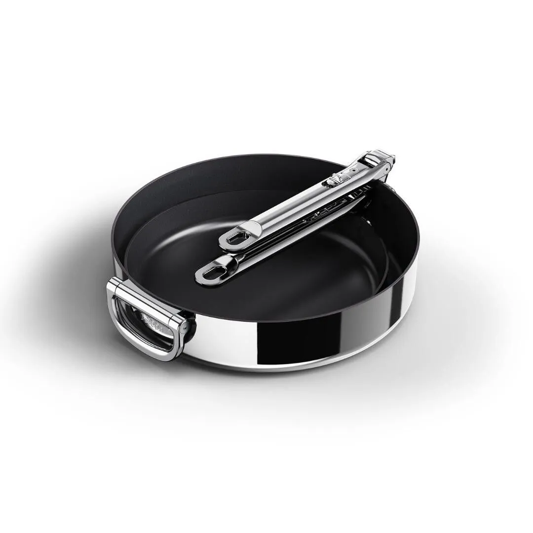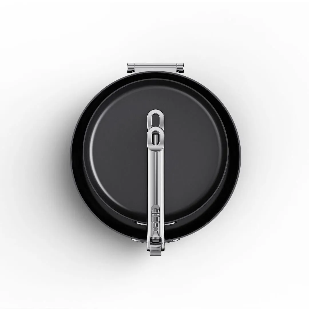 Ergonomik mandal sistemi hızlı ve sezgisel kullanım sunar; pişirme sırasında sağlam kavrama, saklama sırasında ise kompakt form elde edilir.