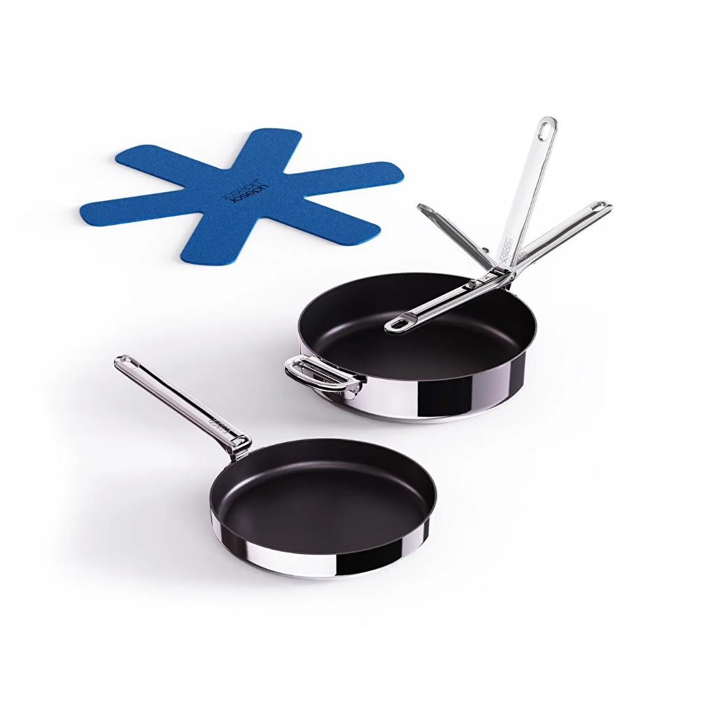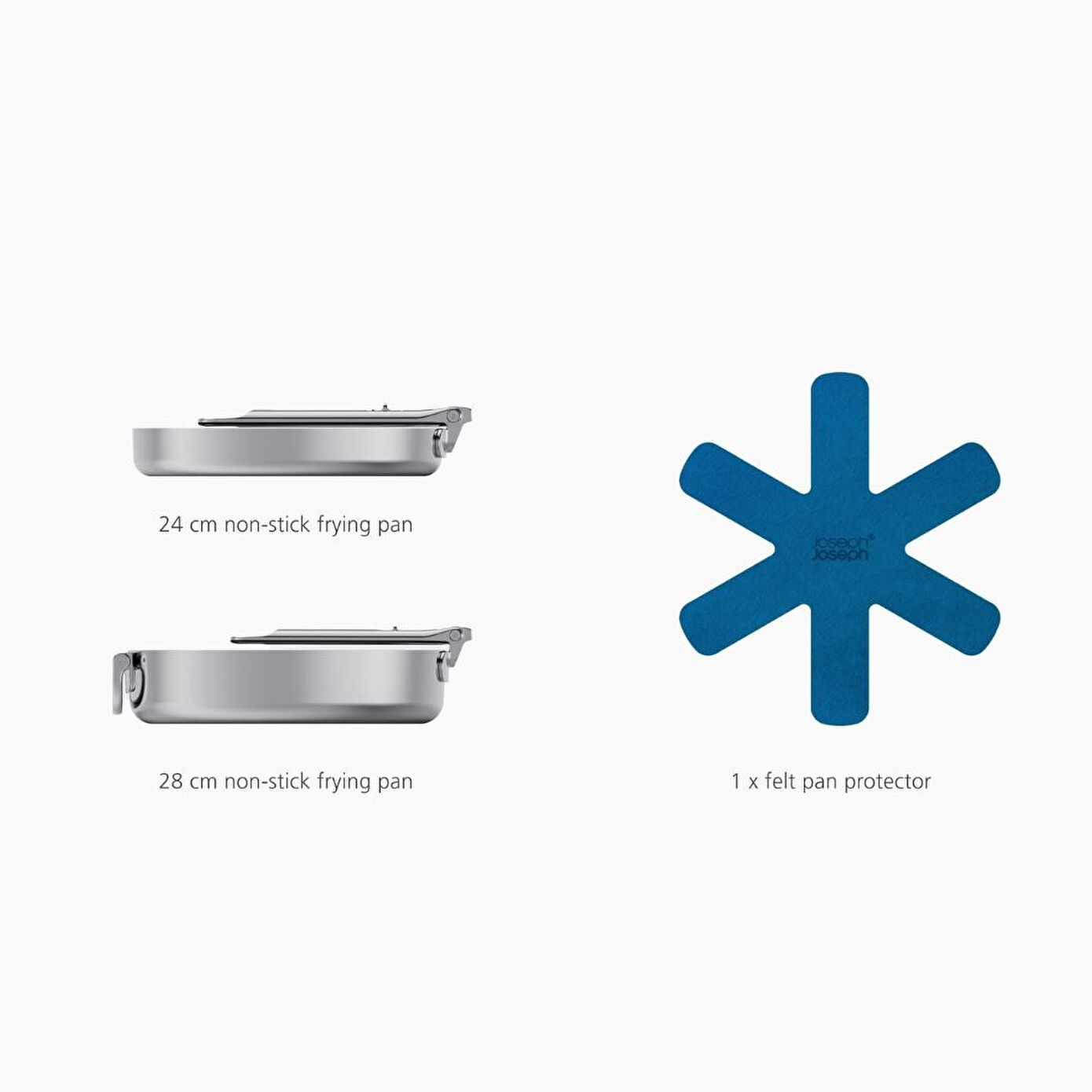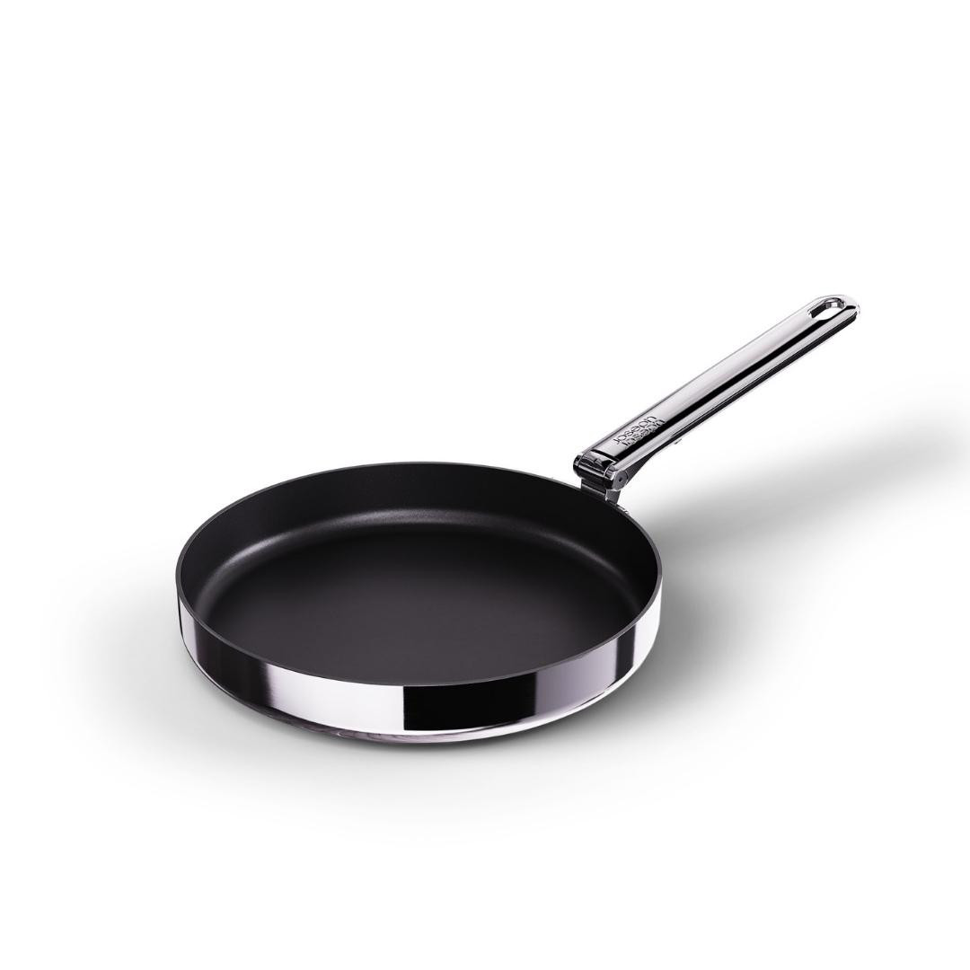 Joseph Joseph’e özel SwingLock™ katlanabilir sap mekanizması, paslanmaz çelik sapın tek hareketle güvenle kilitlenip açılmasına olanak tanır. Bu sayede tavalarsaklama sırasında düz şekilde üst üste istiflenebilir ve dolap/çekmecelerde %50’ye kadar alan tasarrufu sağlanır.