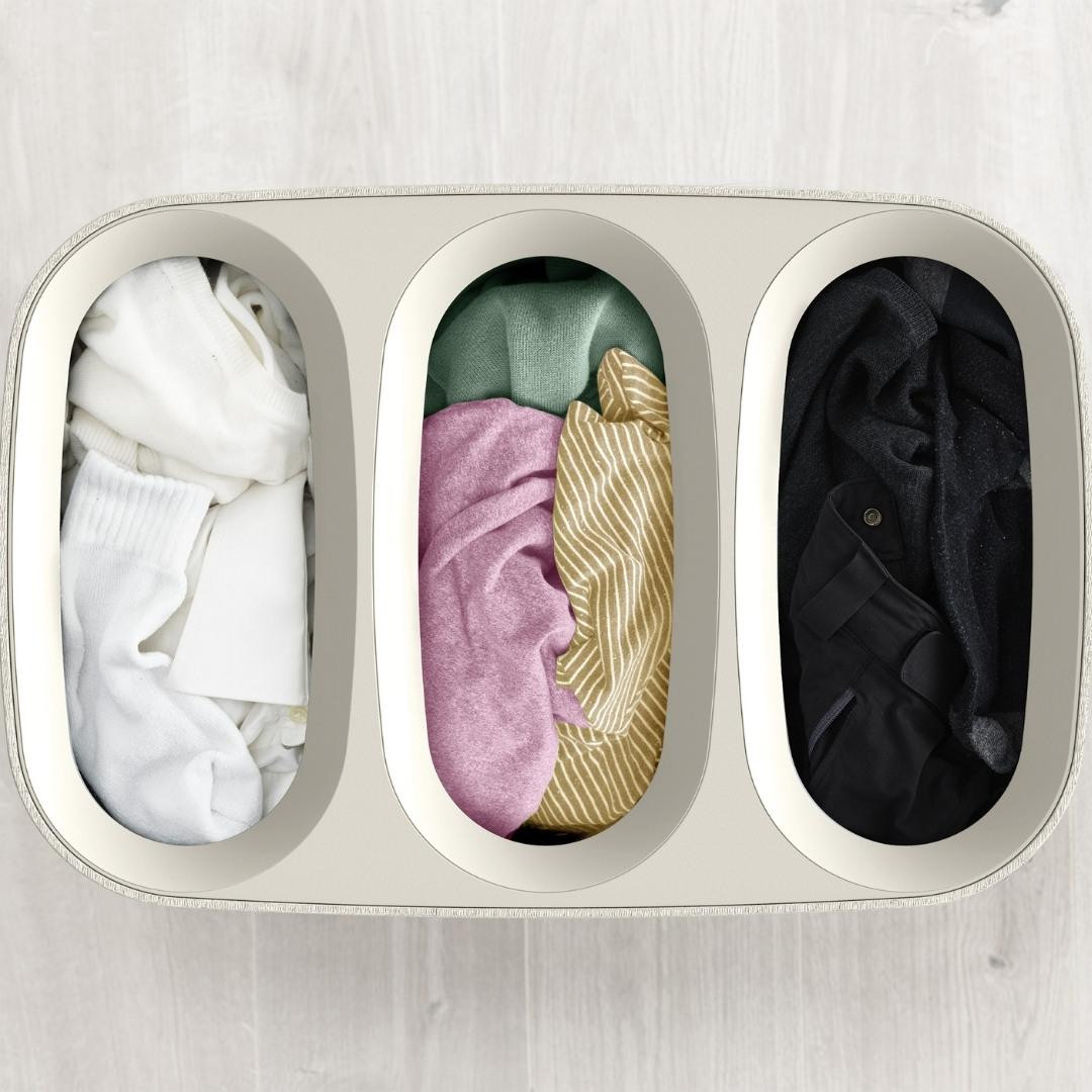 Özel Bölümlerle Kolay AyırmaGiysilerinizi farklı kategorilere ayırmak artık daha kolay. Üç ayrı bölme sayesinde renkli, beyaz ve hassas giysilerinizi ayrı ayrı toplayabilirsiniz. Bu da çamaşır yıkarken zaman ve enerji tasarrufu sağlar.