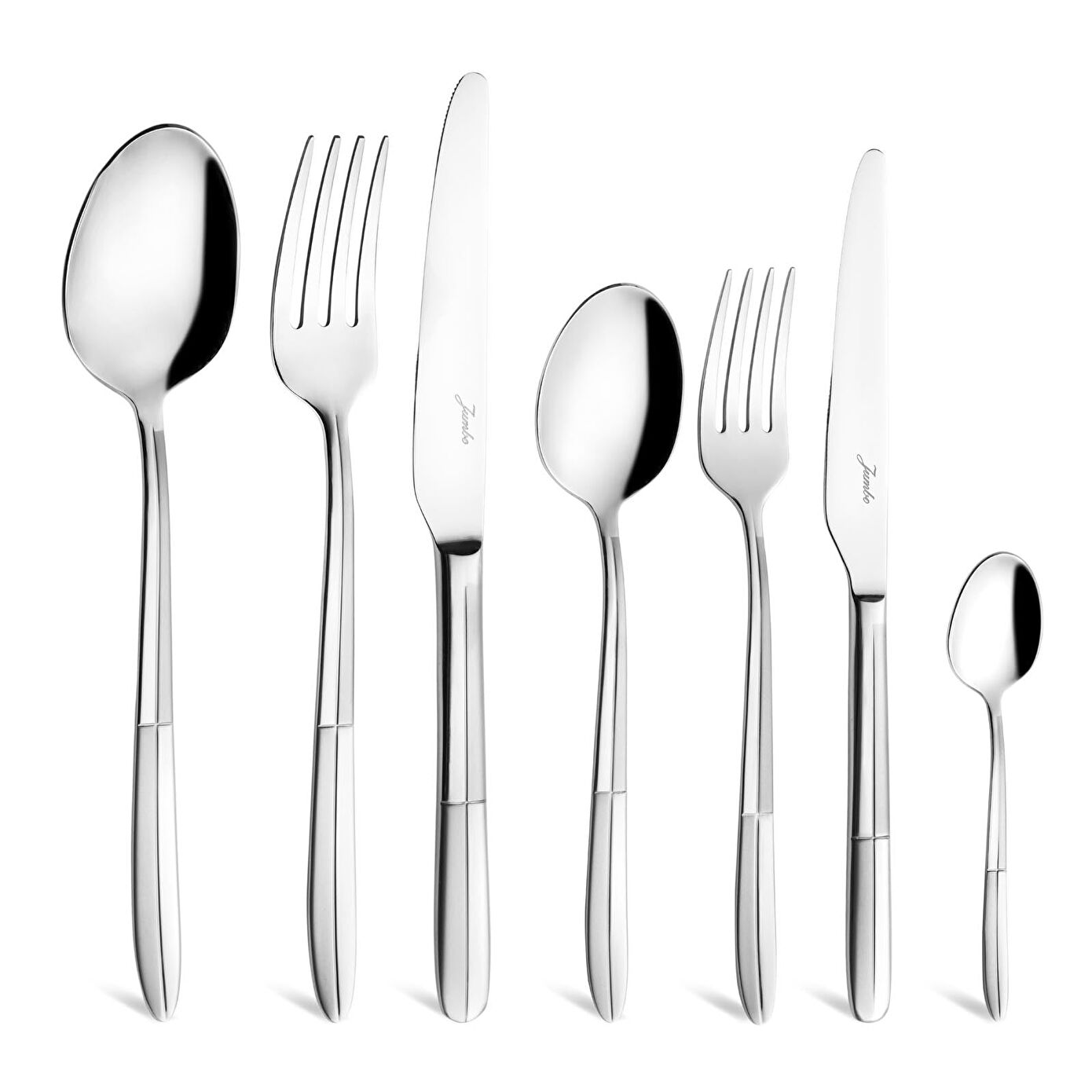 Jumbo 9401 gümüş renkli 84 parça 12 kişilik çatal kaşık bıçak seti, paslanmaz çelik malzemeden imal ediliyor. Gerek çeyizler gerek özel konuklara hazırlanan sofralar için değerlendirilebilen bu sette yok yok. Her birinden on iki adet olmak üzere altın ve metal renklerinin parladığı yemek kaşıkları, yemek çatalları ve yemek bıçaklarına ek olarak tatlı kaşıkları, tatlı çatalları, tatlı bıçaklar ve çay kaşıkları da bu takımın bir parçası. İdeal ölçüleri, zamansız tasarımı, paslanmaz çelik malzemesi ve uzun ömürlü yapısıyla Jumbo 9401 84 parça 12 kişilik çatal kaşık bıçak takımı bu sayfada sizi bekliyor. Acele edin, sevdiklerinizi sofranızdaki ışıltıya davet edin!