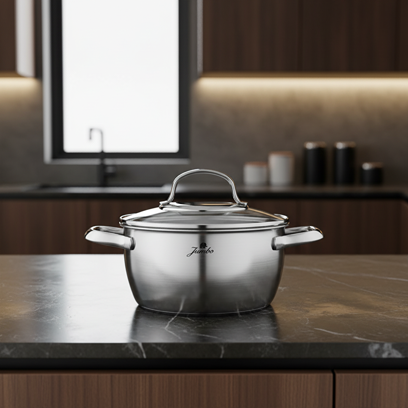 Jumbo 3 ply tencereler ısının hızlı ve eşit bir şekilde dağılmasını sağlar, bu da yemeklerin daha verimli bir şekilde pişmesini sağlar.