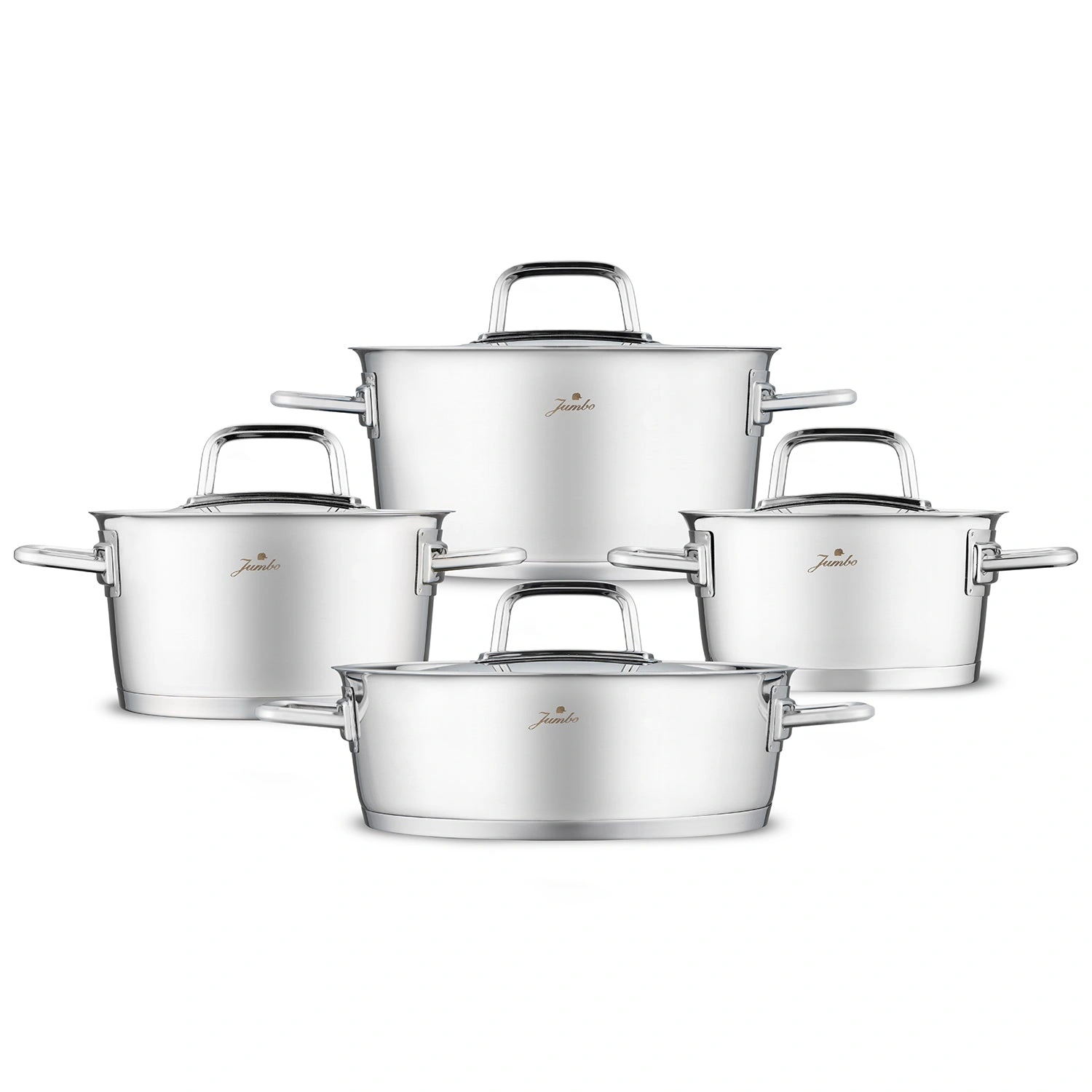 Profesyonel bir pişirme deneyimi sunan Jumbo Felix 8 parça çelik tencere seti yüksek kalitesi ile karşınıza çıkıyor. Paslanmaz çelikten üretilen bu set uzun yıllar boyunca kullanım olanağı sahip. Sağlamlığı ve dayanıklılığı yanında modern tasarımıyla da ön plana çıkmayı başarıyor. Şık ve standartların dışında olan tasarımı pek çok kullanıcı tarafından da ilgi görüyor. Kare görünümü sete farklı bir görünüm katarak diğer tencere modellerinden ayrılmasına yardımcı oluyor. 8 parçadan oluşan Jumbo Felix tencere seti dilediğiniz yemeği hazırlayabilmenize imkân tanıyor. Her mutfakta mutlaka olması gereken bir temel eşyaları tek bir set içerisinde sizlere sunuyor. Siz de sevdiklerinize harika sofralar oluşturmak istiyorsanız Jumbo Felix tencere setiyle yemeklerinizi hazırlayabilir, lezzetli sunumlarda bulunabilirsiniz. Jumbo kalitesinde bu tencere setini kaçırmamak için hemen sepetinize ekleyebilirsiniz.