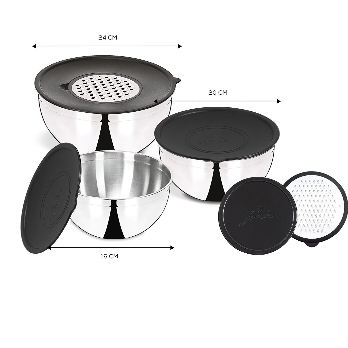 Jumbo 9 parça saklama kabı ile siz de ihtiyaçlarınızı karşılayabilirsiniz. 3 farklı boyuta sahip kap, 2 adet çelik rende 3 kapaktan oluşan bu set farklı kullanım alanları sunuyor. İster yiyeceklerinizi saklayabilir ister ürünlerinizi tek bir kap içerisinde tutabilir isterseniz de yalnızca rendeleme işlemini gerçekleştirmek için kullanabilirsiniz. Paslanmaz çelik gövdesi ve plastik kapaklı yiyeceklerinizi güven içerisinde saklayabilmenize yardımcı oluyor. Aynı zamanda sağlıklı bir materyal olan çelik sayesinde gönül rahatlığıyla yiyeceklerinizi de korumanız mümkün. Üstelik yemek sofralarınızda salata kasesi olarak da kullanabilirsiniz. Bakımı konusunda da oldukça pratik olan bu set bulaşık makinesinde yıkamaya uygun. Fakat kapaklarının elde yıkanması öneriliyor. Uzun yıllar boyunca kullanabileceğiniz bu set ile mutfaklarınızda pratik bir kullanım alanına kavuşmak istiyorsanız hemen sipariş verebilirsiniz