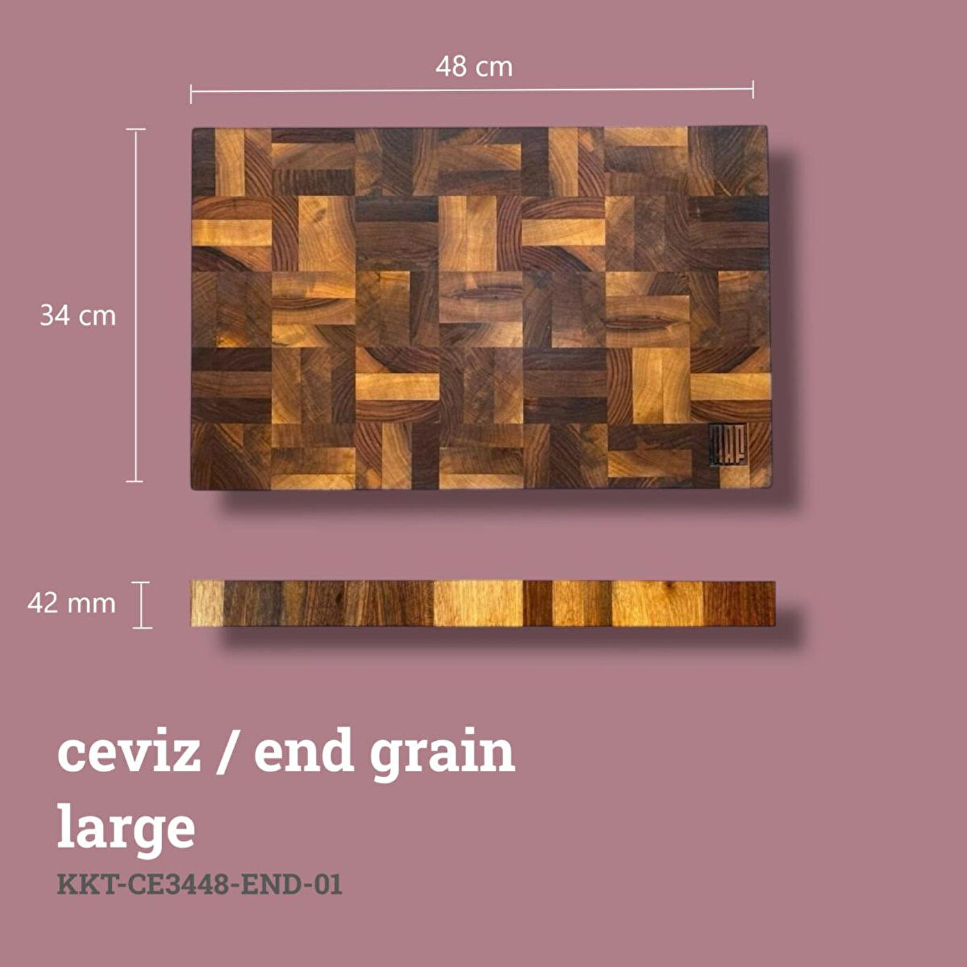 Kaf Ahşap Kesme Tahtası Ceviz (End Grain) - L