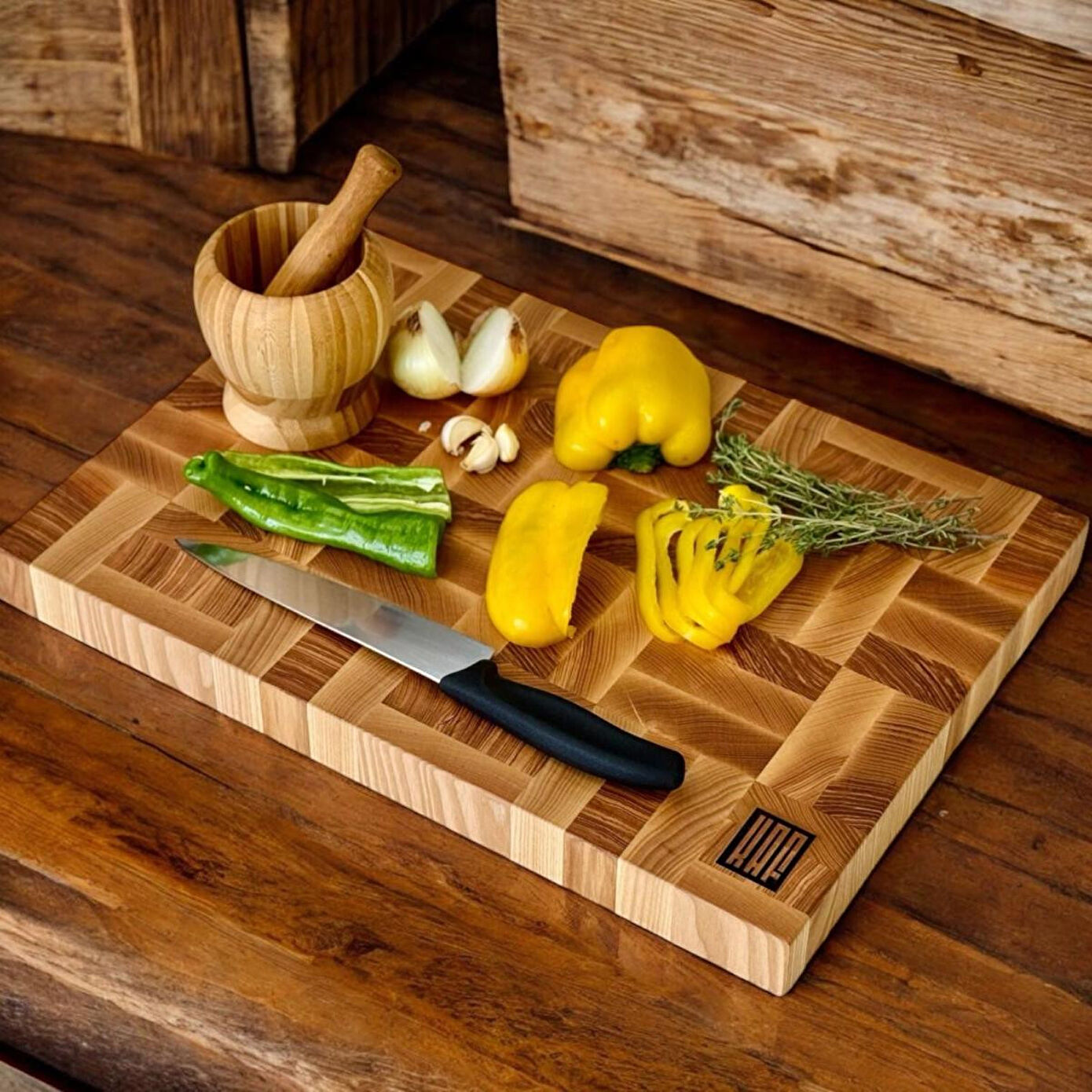 Kaf Ahşap Kesme Tahtası Dişbudak Beyaz (End Grain) - L