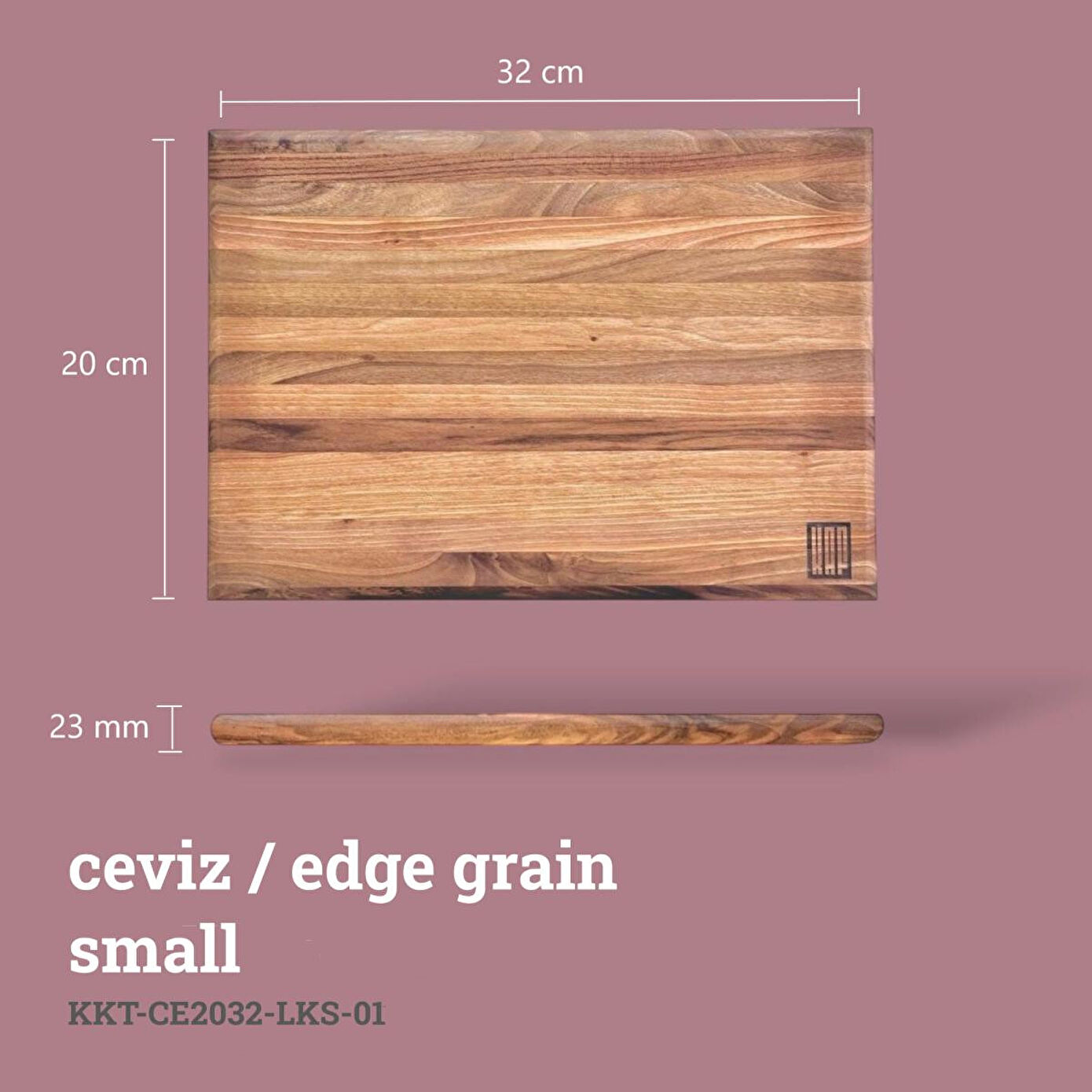 Ceviz Edge-Grain (Yatay Lif) Kesme Tahtası Doğanın zarafetini ve el işçiliğinin titizliğini bir araya getiren bu Ceviz Edge Grain Kesme Tahtası, mutfakta hem estetik hem de sağlam bir dosttur. Ceviz ağacı, kendine özgü sıcak kahve tonları, belirgin damar yapısı ve yoğun dokusuyla dayanıklılığın simgesidir. Her bir tahta, doğanın ellerinden çıkmış gibi benzersizdir. Edge Grain (yatay lif) yapısı, tahtayı bıçak darbelerine karşı dirençli kılar; düzgün yüzeyi ise uzun süreli kullanımlarda formunu korur. Gıda ile temasa uygun doğal yağlarla korunan yüzey, ahşabın gerçek dokusunu hissettirir. El yapımı olarak üretilen her parça, özenle zımparalanır, yağlanır ve son dokunuşlarıyla mutfağınıza sıcak bir karakter kazandırır. Hem kesme hem de sunum tahtası olarak kullanılabilir — sofranıza zarafet, tezgâhınıza doğallık katar.
