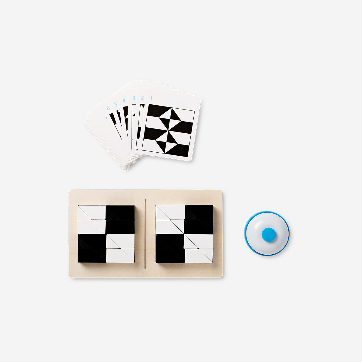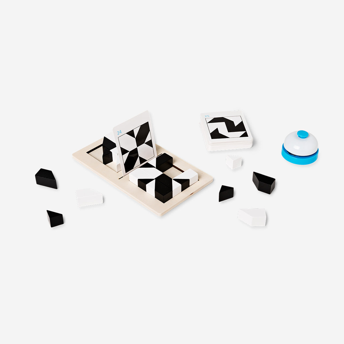 Hız ve dikkat gerektiren Blok Savaş Oyunu ile eğlenceye hazır olun! Oyuncular, siyah-beyaz desenli blokları görev kartlarına göre eşleştirmek için zamana karşı yarışır. Bölme tahtası sayesinde düzenlemeler son ana kadar gizli kalır. Oyunun sonunda deseni tamamlayan ilk kişi, metal zile basarak turu kazanır. Bu heyecan verici detay, her raunda ekstra enerji ve eğlence katar.