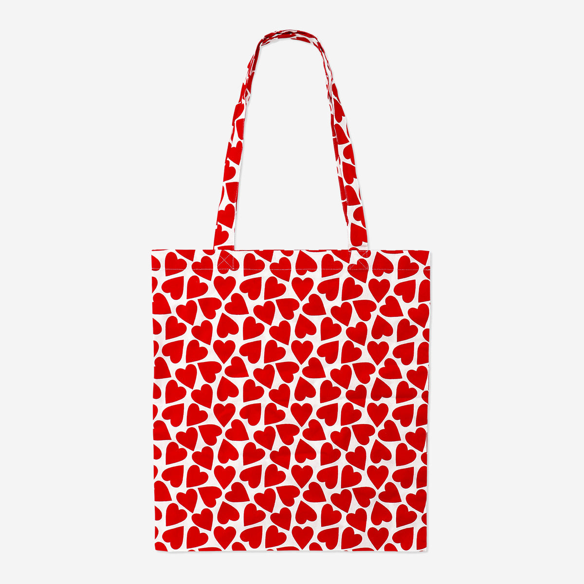 Kırmızı Kalp Desenli Bez Çanta, günlük ihtiyaçlarınızı taşırken şık bir dokunuş eklemek isteyenler için mükemmel bir seçimdir. 37,5 x 41,5 cm ölçülerindeki bu hafif ve geniş çanta, pamuktan üretilmiştir ve dayanıklılığıyla günlük kullanımda rahatlık sağlar. Cesur kırmızı kalp desenleri, Sevgililer Günü'nün romantik ruhunu yansıtarak her kıyafete eğlenceli bir hava katar.