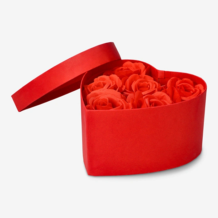 Kırmızı Kalp Kutuda 6'lı Yapay Gül Seti, güzelce işlenmiş altı dekoratif gül içeren bu kırmızı kalp şeklindeki kutu ile romantik bir jest yapın. 16 x 8,7 x 16 cm ölçülerindeki bu büyüleyici sunum kutusu, Sevgililer Günü veya herhangi bir özel gün için ideal bir çiçek hediyesidir. Kalp şekli ve içindeki canlı kırmızı güller, onu anlamlı bir hatıra haline getirerek sevgi ve şefkati ifade etmek için mükemmel kılar.