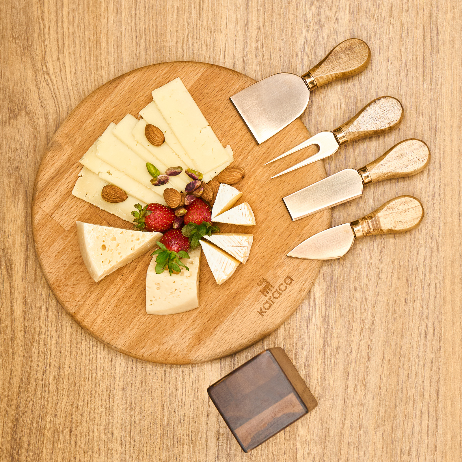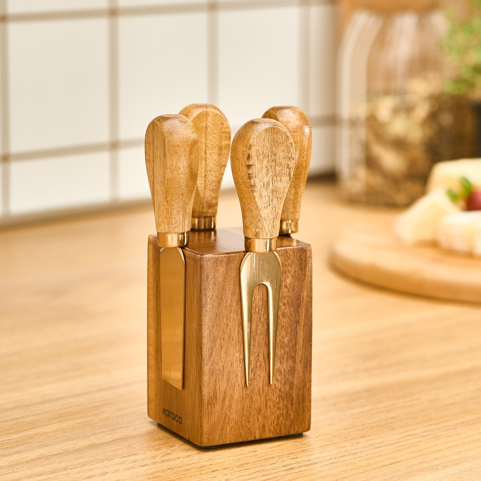 Karaca Antik Mıknatıslı Akasya Ağacı 5 Parça Peynir Bıçak Seti
