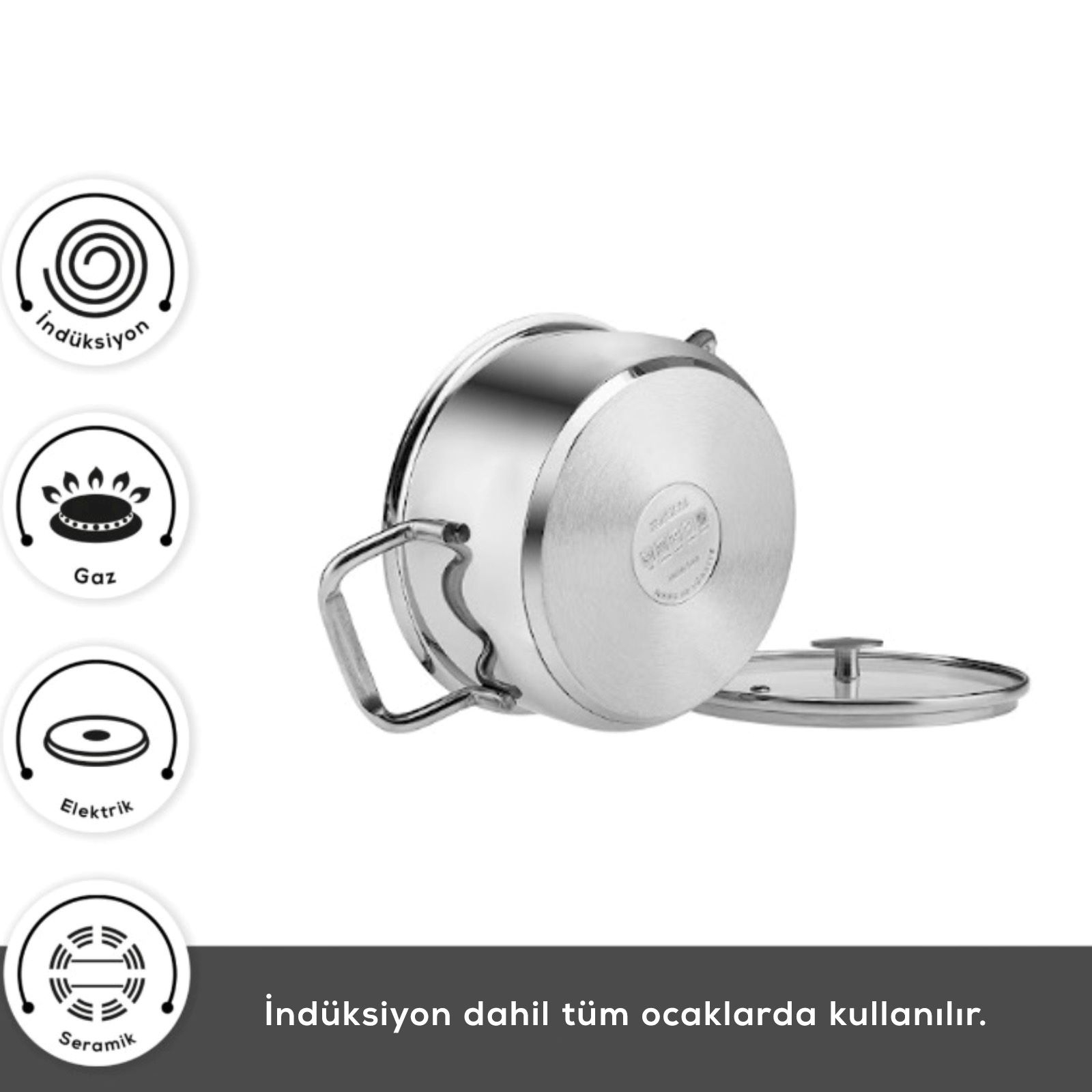 - İndüksiyon Taban Teknolojisi: İndüksiyon dahil tüm ocak tipleriyle uyumludur ve enerji tasarrufu sağlar.
