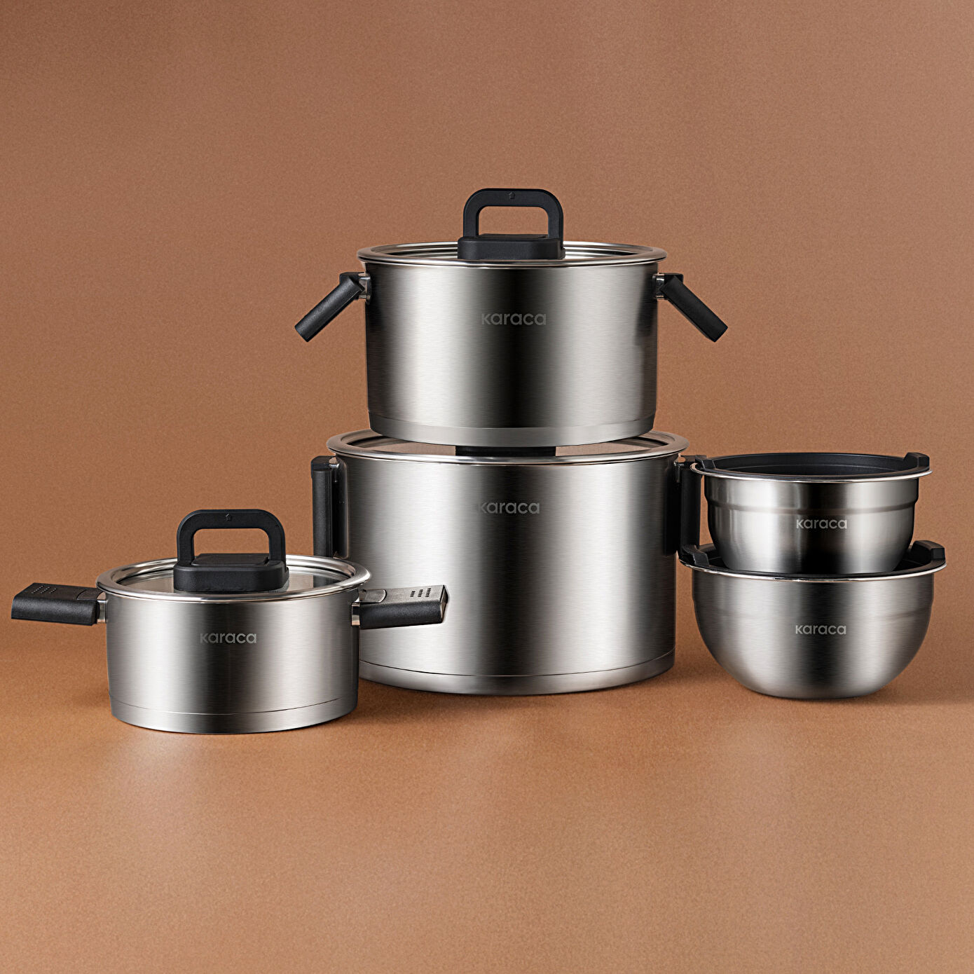 Karaca Aşiyan Katlanabilir Kulplu 10 Parça Çelik Tencere Seti