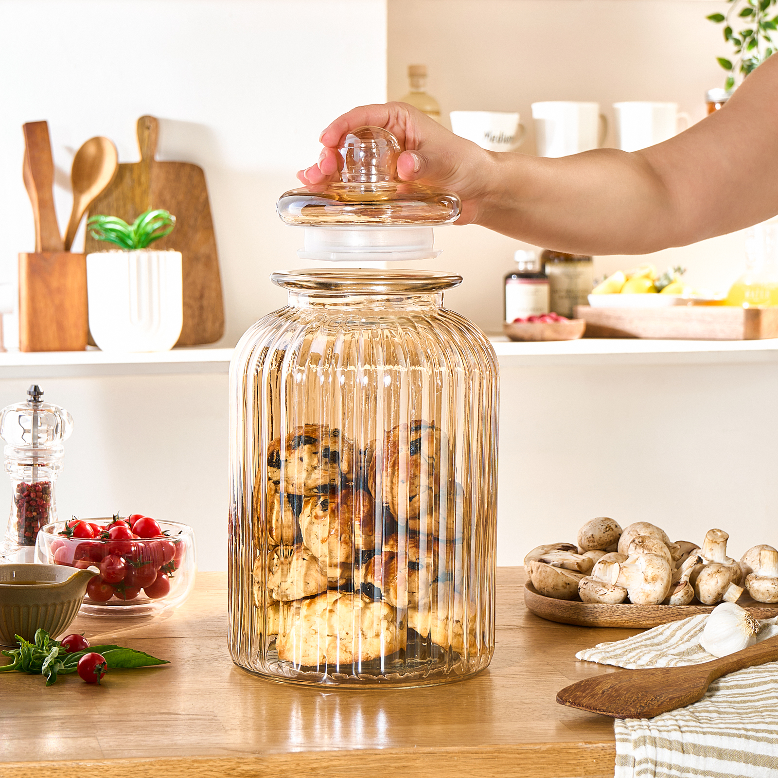 Mutfağınızda şıklık ve düzen bir arada! Karaca Binora Cam Kapaklı Cam Kavanoz, estetik tasarımı ve fonksiyonelliğiyle hem mutfağınıza zarafet katıyor hem de saklama ihtiyaçlarınıza pratik bir çözüm sunuyor.