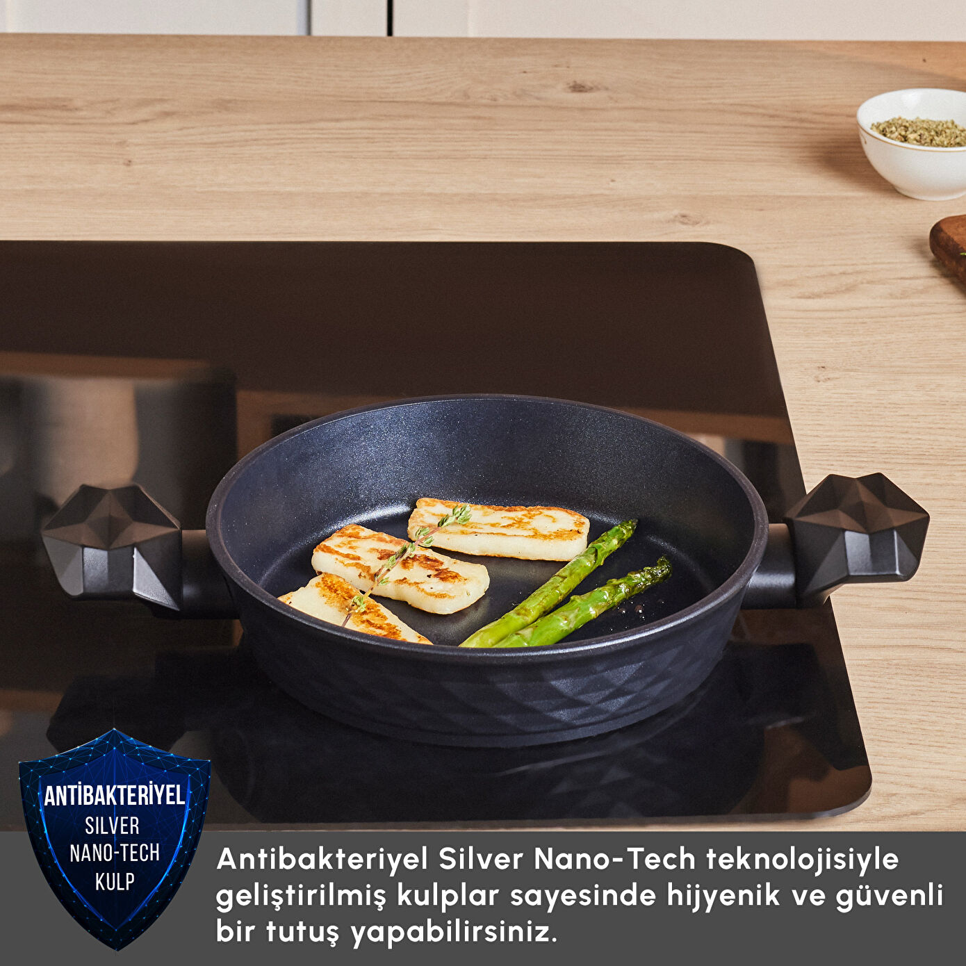 - Gümüş nano partiküllerle kaplanan kulplar uzun yıllar antibakteriyel kalma özelliğine sahiptir.