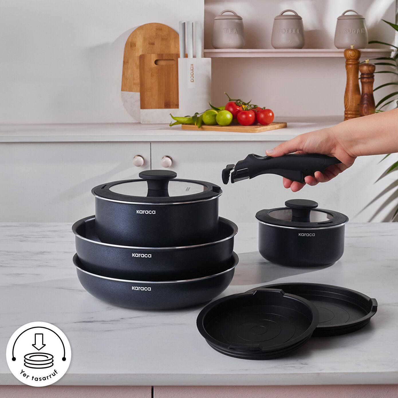 Karaca BioDiamond Smart Clip Tencere Seti, lezzetli yemekler pişirmeniz ve yemeklerinizi en iyi şekilde saklamanız için tasarlandı.