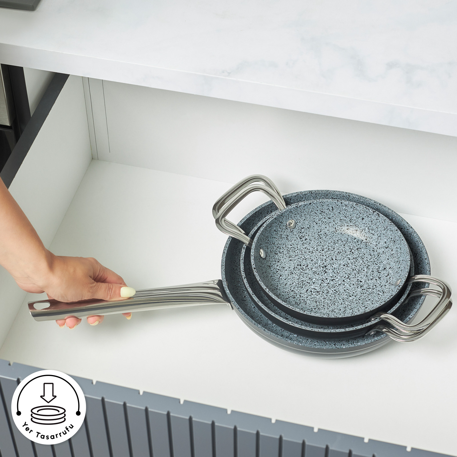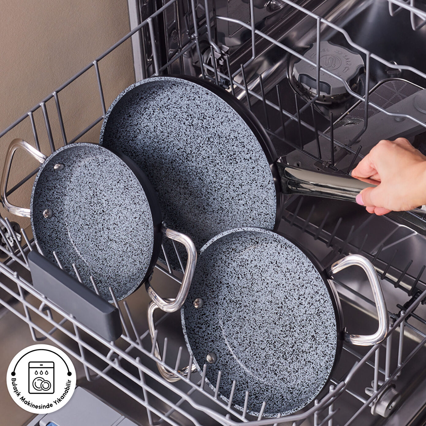Monet serisi ısıyı her tarafa eşit dağıtarak yemeklerin lezzetini artırır.Maksimum yanmaz yapışmazlık sağlayan granit görünümlü kaplaması leke tutmaz özelliğiyle de kolayca temizlenmesine yardımcı olur.
